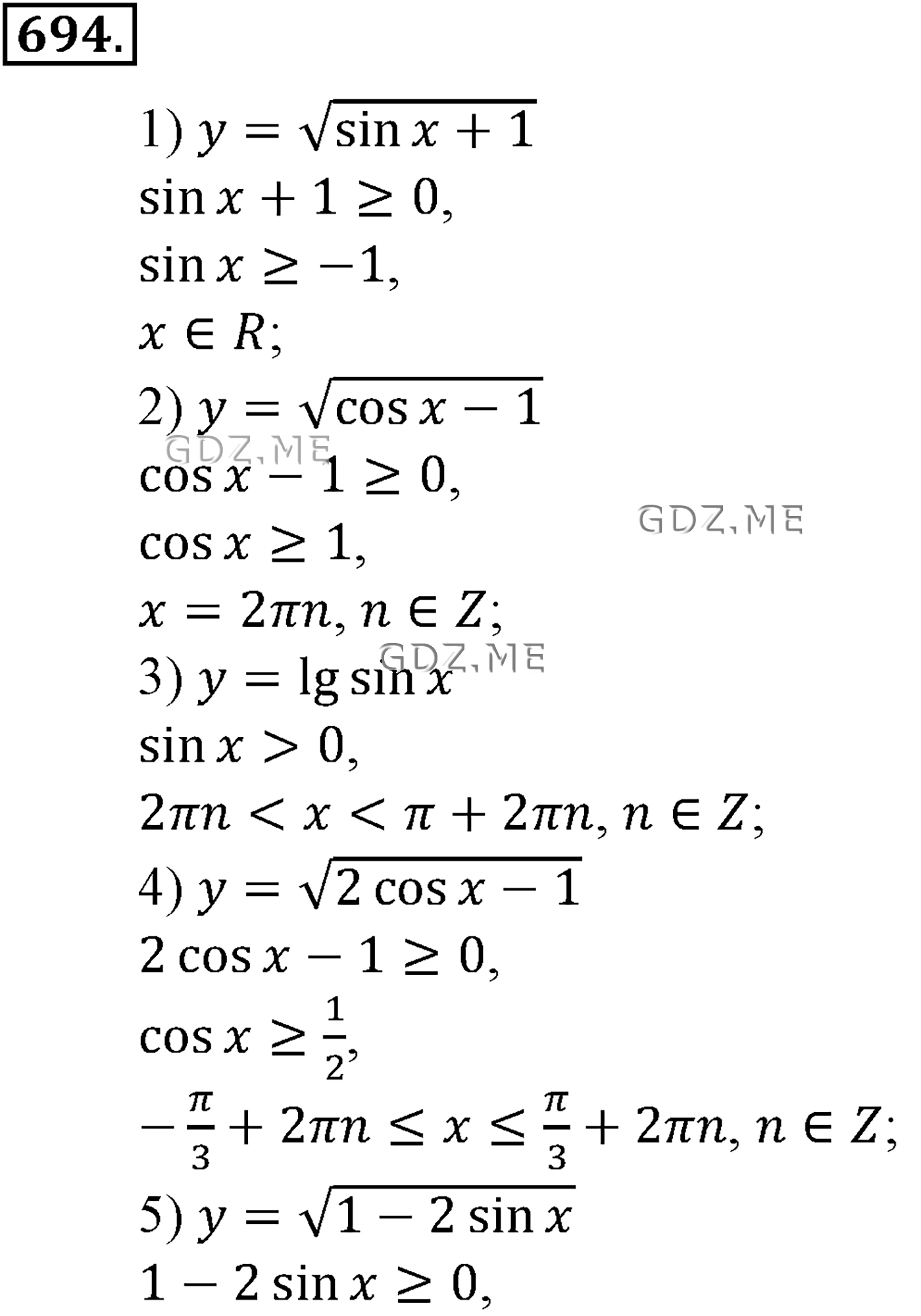 ГДЗ по Алгебре за 10 и 11 класс Алимов, Колягин. Ответ на Задание номер 694.1 (Глава 7 Тригонометрические функции)