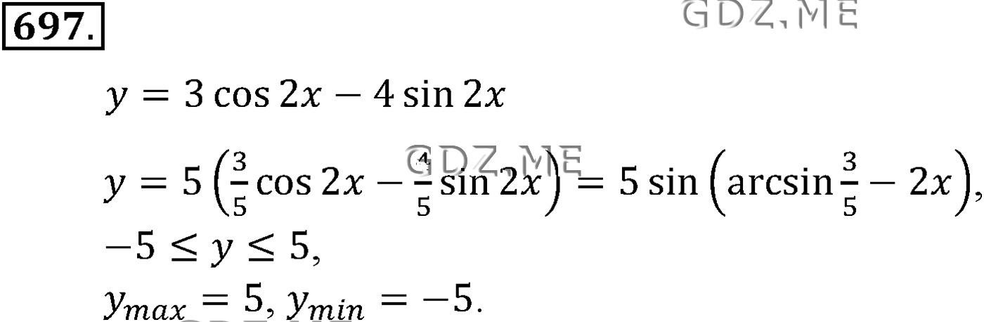 Подробный вариант решения из решебника (ГДЗ): Задание номер 697 (Глава 7 Тригонометрические функции) по предмету Алгебра, за 10 класс, авторы учебника Алимов, Колягин.