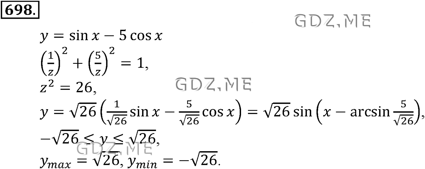 ГДЗ по Алгебре за 10 и 11 класс Алимов, Колягин. Ответ на Задание номер 698 (Глава 7 Тригонометрические функции)