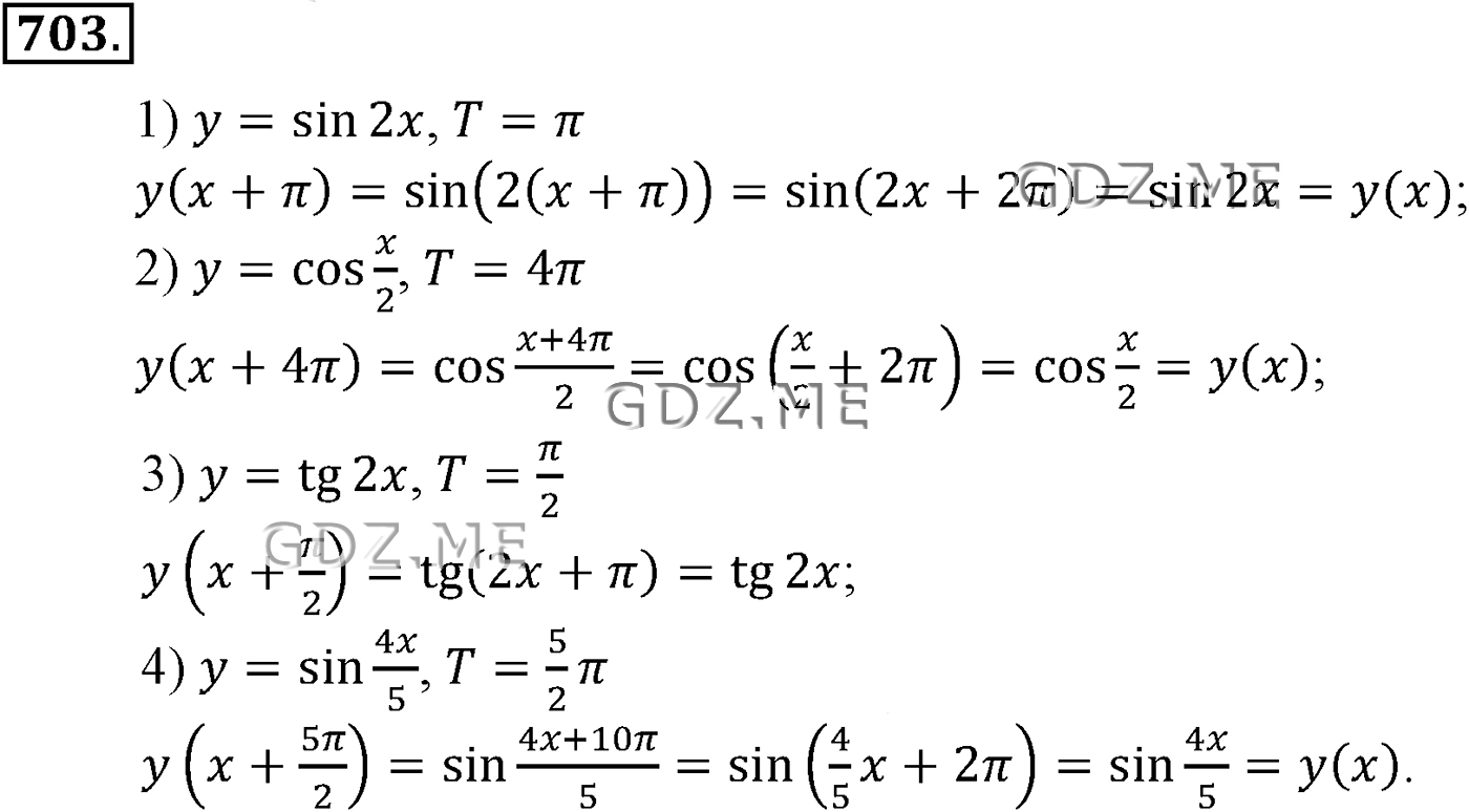 ГДЗ по Алгебре за 10 и 11 класс Алимов, Колягин. Ответ на Задание номер 703 (Глава 7 Тригонометрические функции)