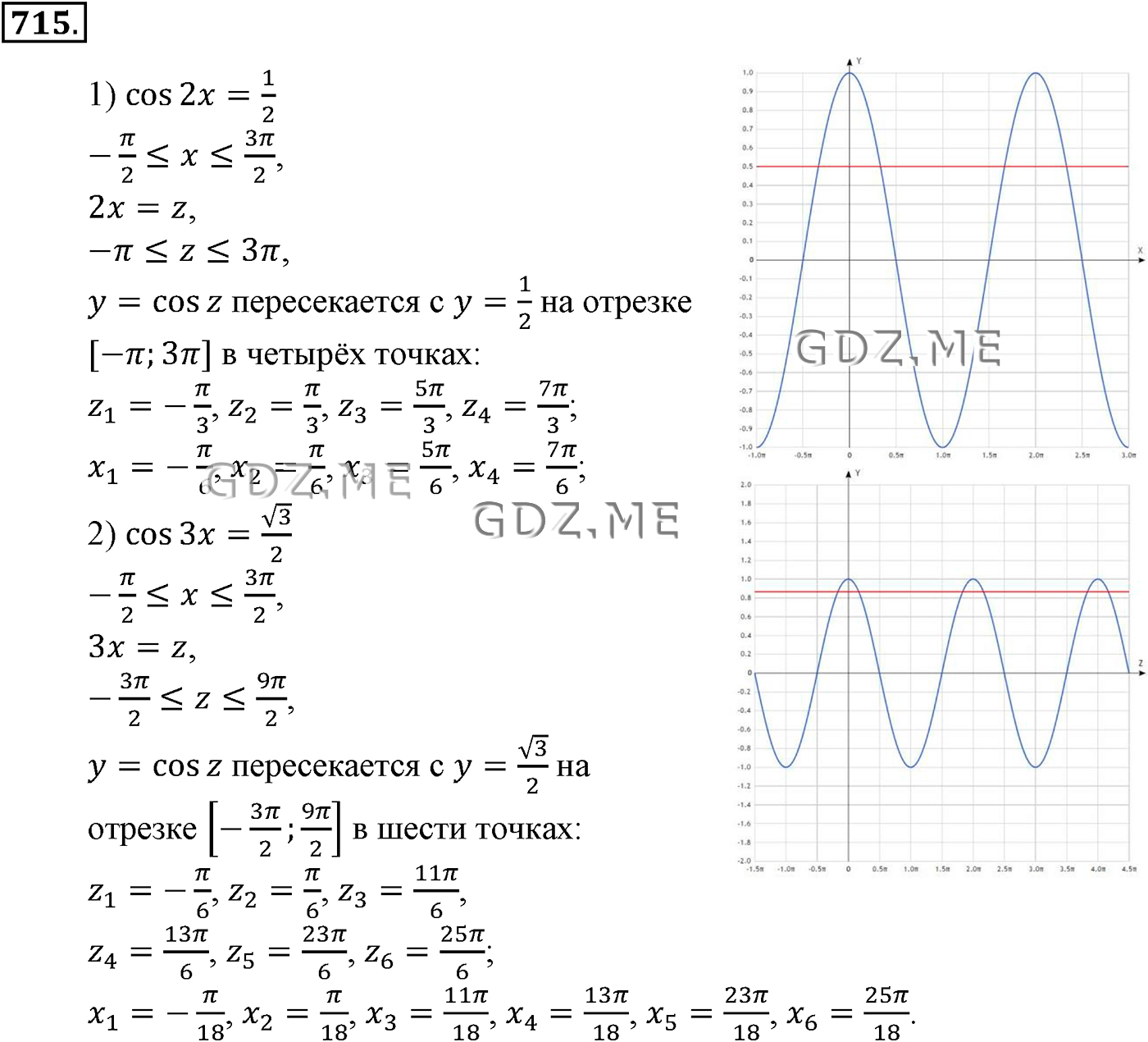 Подробный вариант решения из решебника (ГДЗ): Задание номер 715 (Глава 7 Тригонометрические функции) по предмету Алгебра, за 10 класс, авторы учебника Алимов, Колягин.