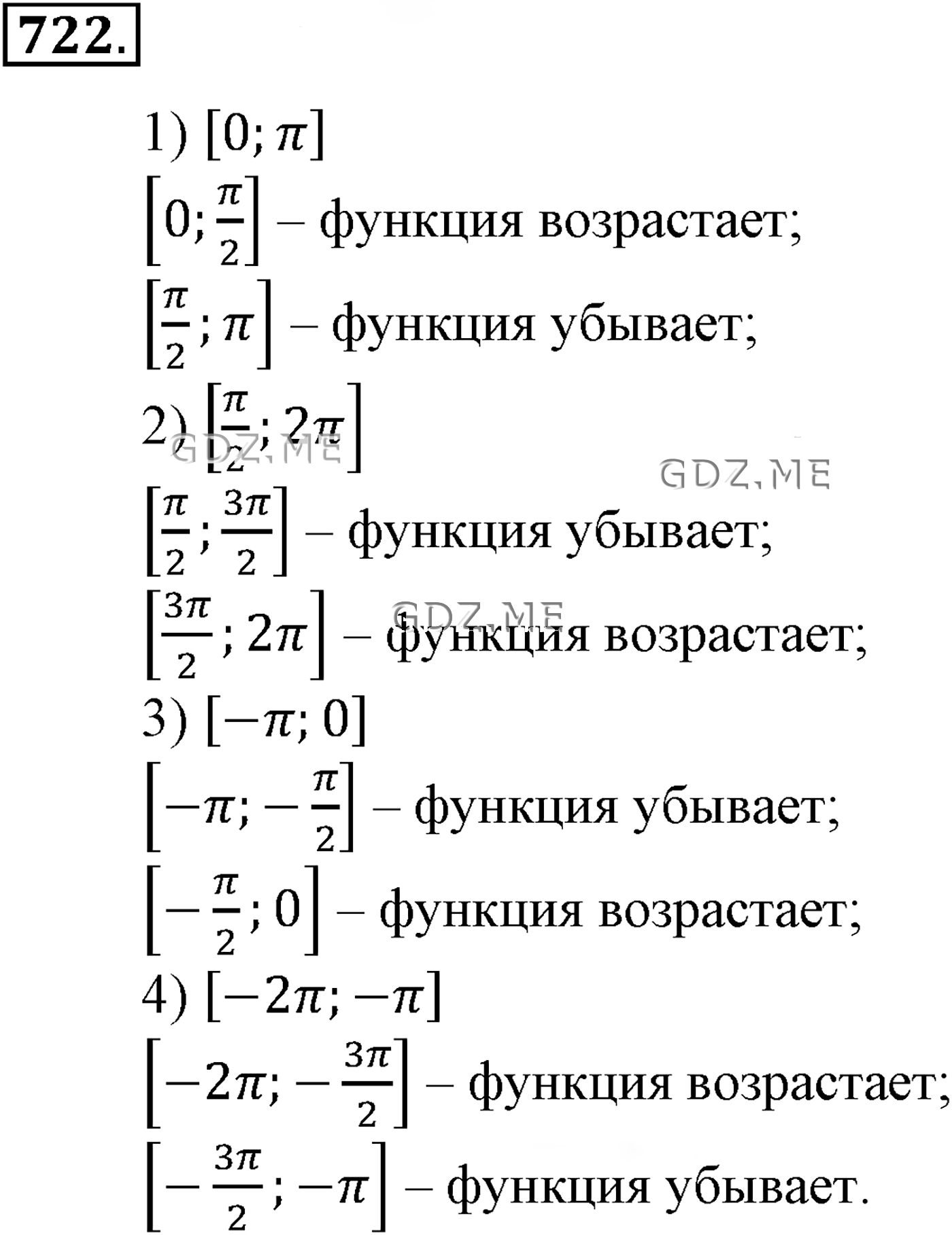 ГДЗ по Алгебре за 10 и 11 класс Алимов, Колягин. Ответ на Задание номер 722 (Глава 7 Тригонометрические функции)