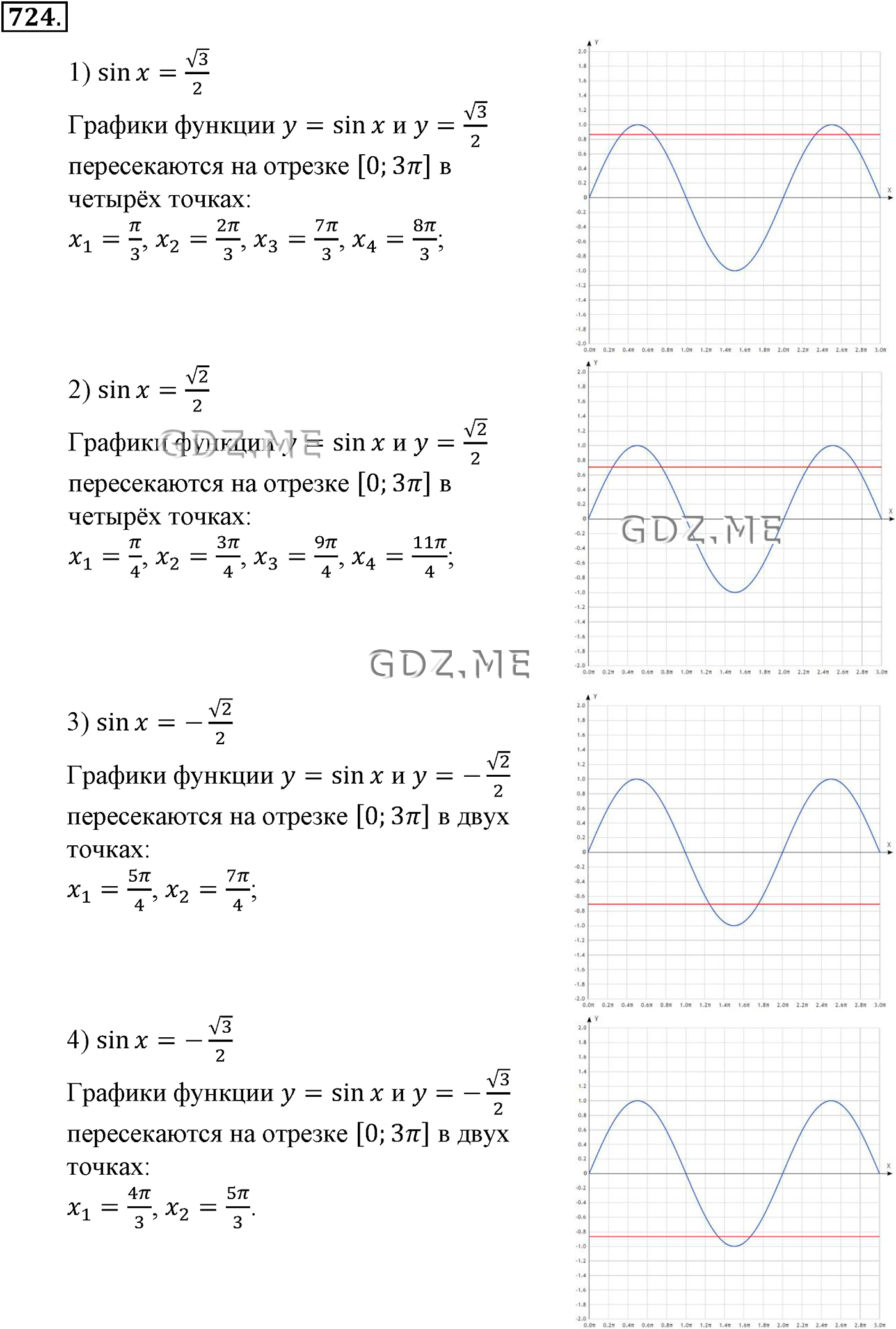 Подробный вариант решения из решебника (ГДЗ): Задание номер 724 (Глава 7 Тригонометрические функции) по предмету Алгебра, за 10 класс, авторы учебника Алимов, Колягин.