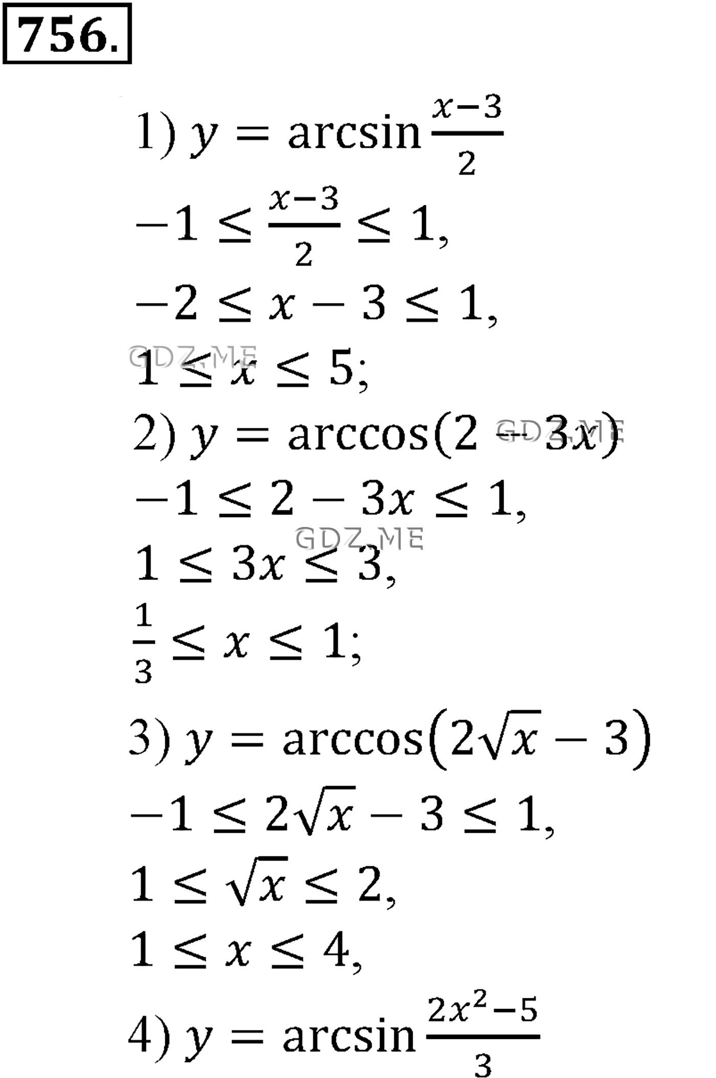 ГДЗ по Алгебре за 10 и 11 класс Алимов, Колягин. Ответ на Задание номер 756.1 (Глава 7 Тригонометрические функции)