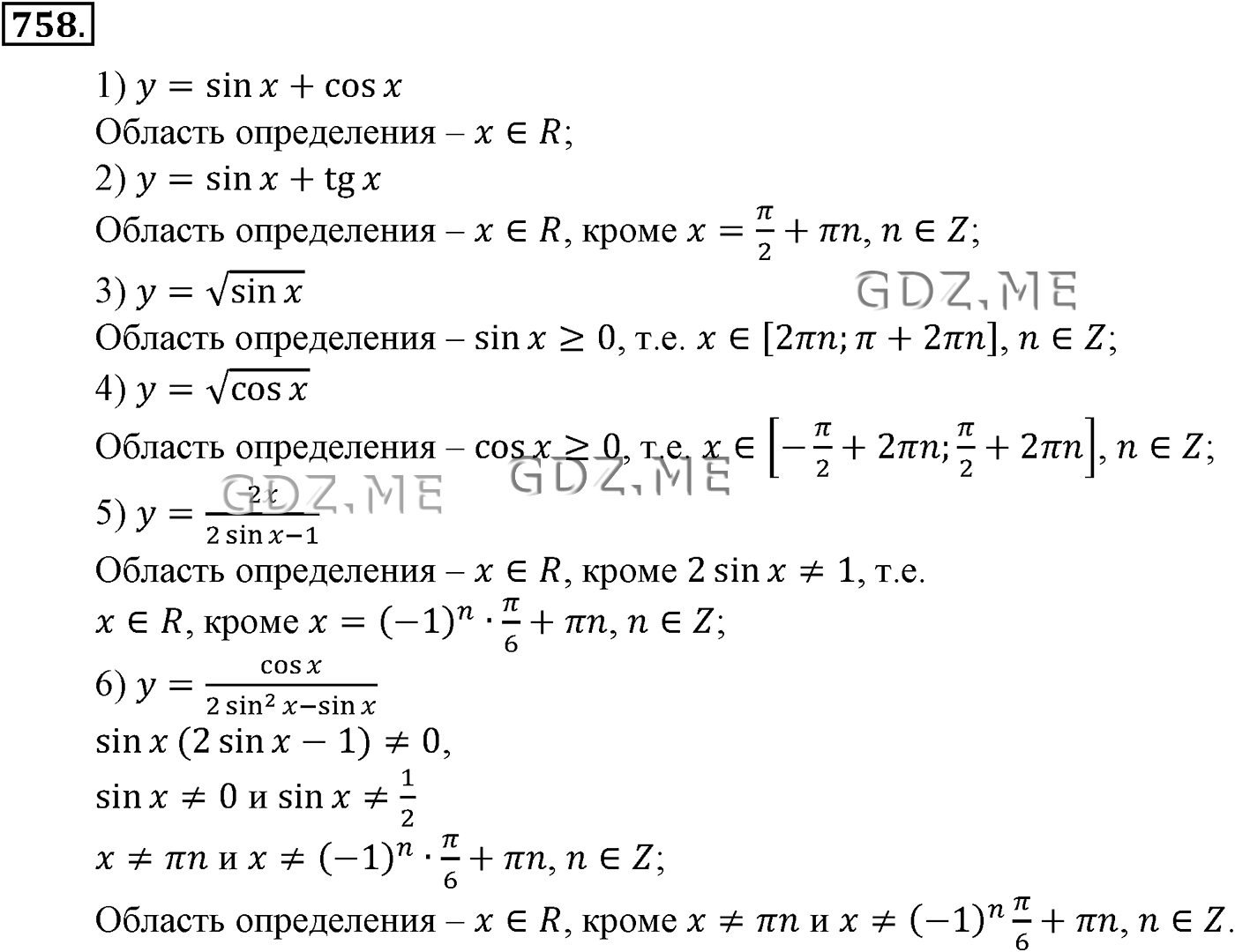ГДЗ по Алгебре за 10 и 11 класс Алимов, Колягин. Ответ на Задание номер 758 (Глава 7 Тригонометрические функции)