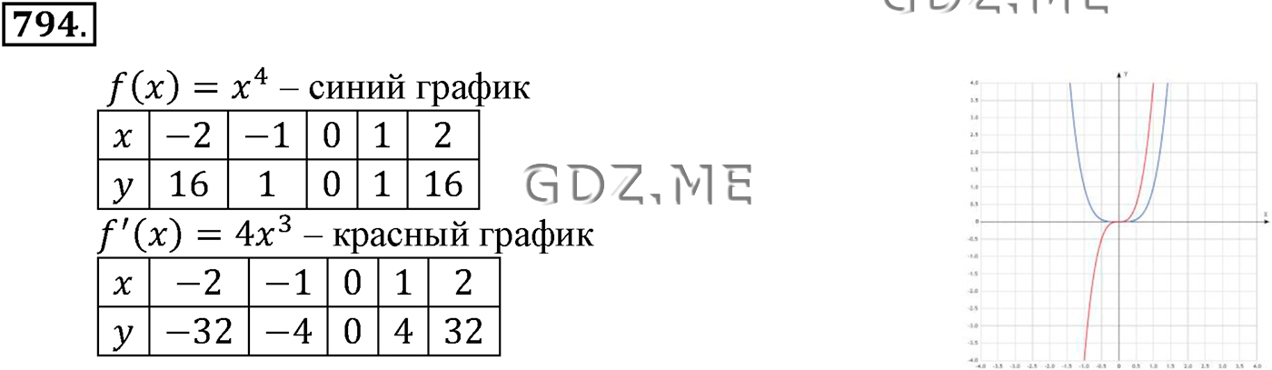 ГДЗ по Алгебре за 10 и 11 класс Алимов, Колягин. Ответ на Задание номер 794 (Глава 8 Производная и её геометрический смысл)