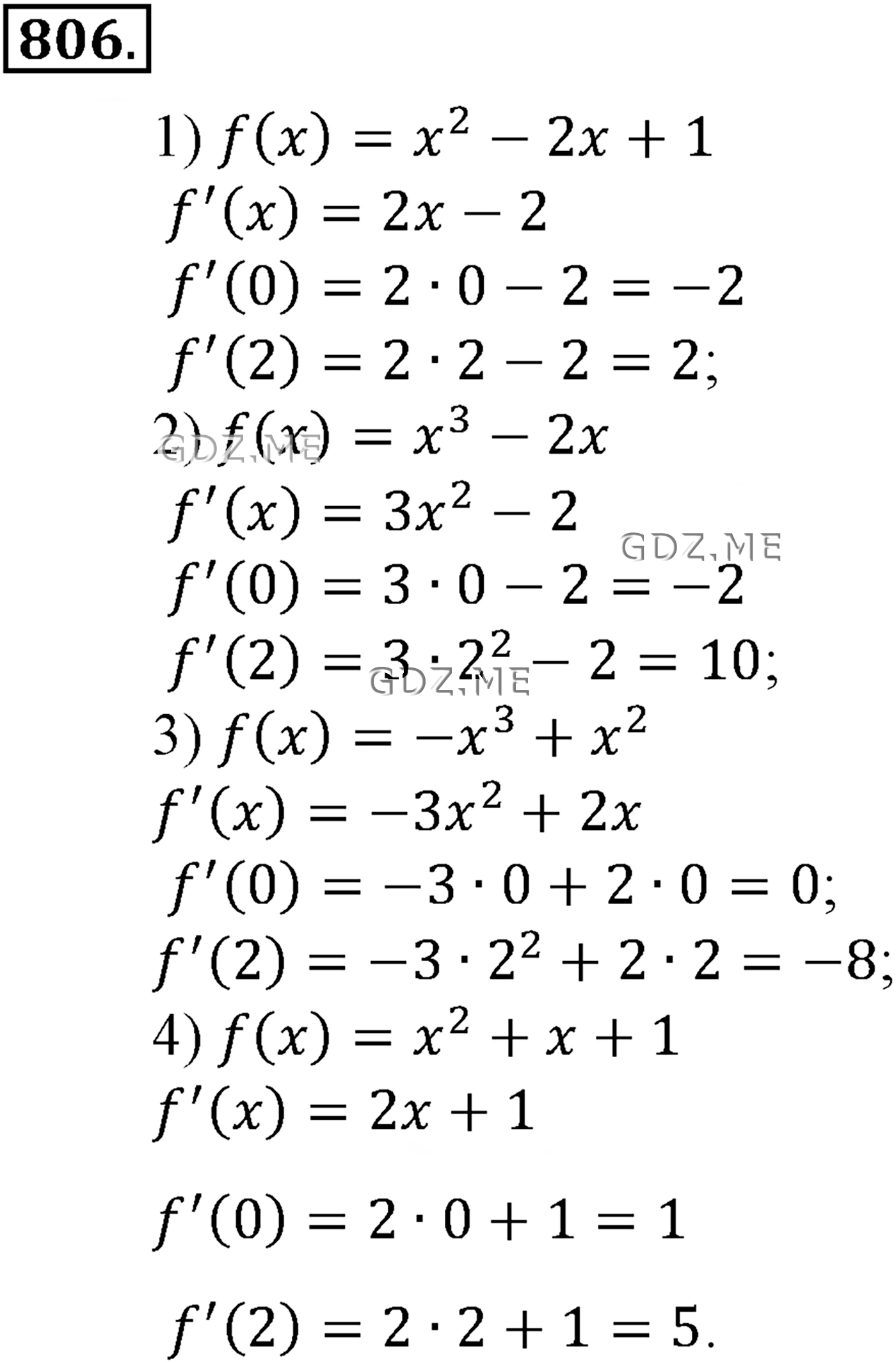 ГДЗ по Алгебре за 10 и 11 класс Алимов, Колягин. Ответ на Задание номер 806 (Глава 8 Производная и её геометрический смысл)
