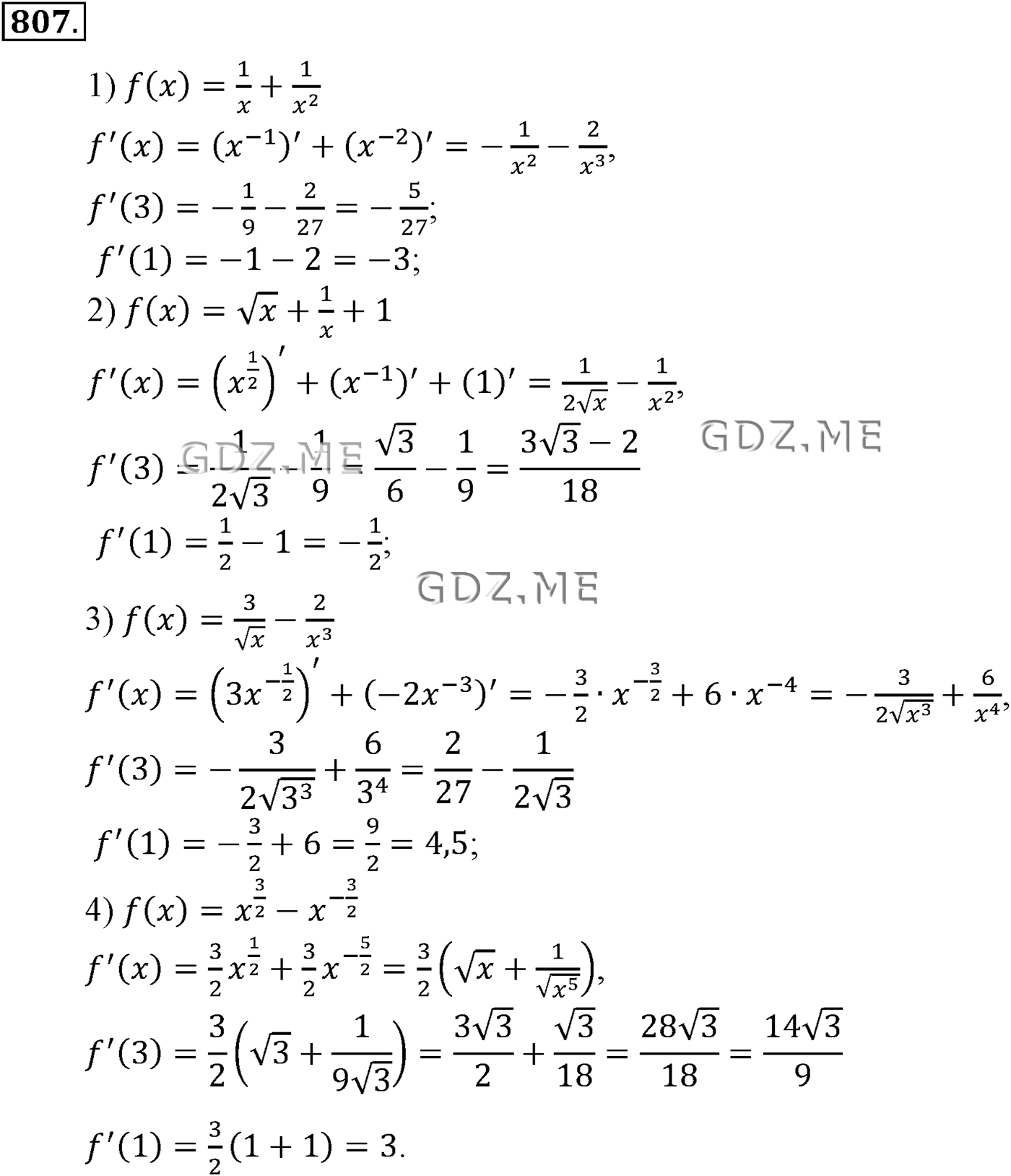 ГДЗ по Алгебре за 10 и 11 класс Алимов, Колягин. Ответ на Задание номер 807 (Глава 8 Производная и её геометрический смысл)