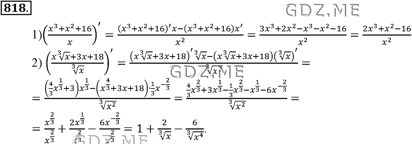 ГДЗ по Алгебре за 10 и 11 класс Алимов, Колягин. Ответ на Задание номер 818 (Глава 8 Производная и её геометрический смысл)