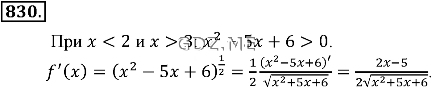 ГДЗ по Алгебре за 10 и 11 класс Алимов, Колягин. Ответ на Задание номер 830 (Глава 8 Производная и её геометрический смысл)