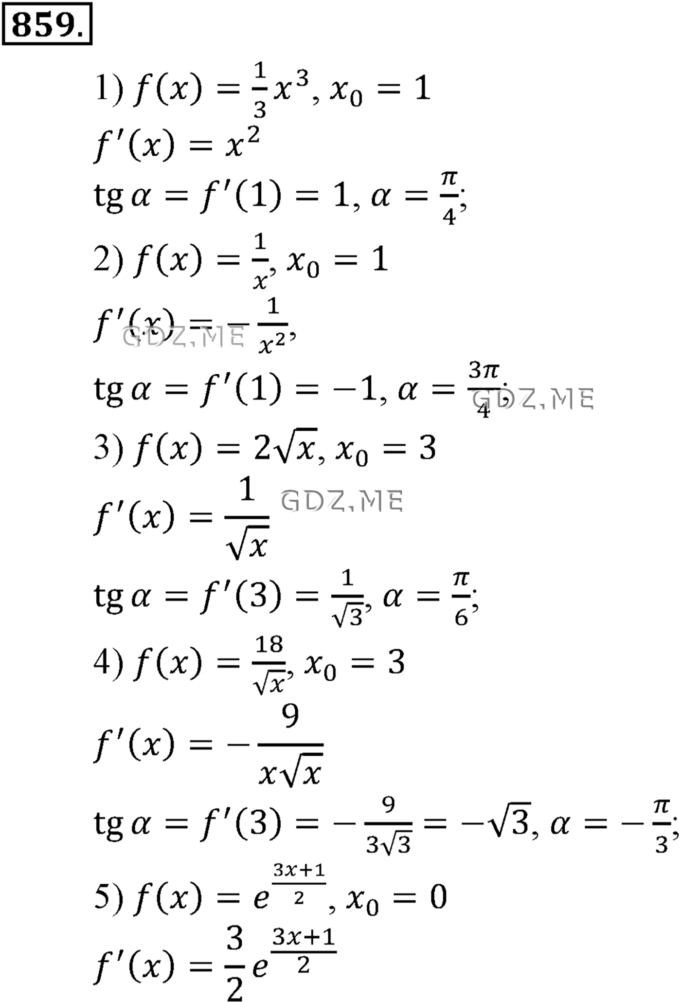 Подробный вариант решения из решебника (ГДЗ): Задание номер 859.1 (Глава 8 Производная и её геометрический смысл) по предмету Алгебра, за 10 класс, авторы учебника Алимов, Колягин.