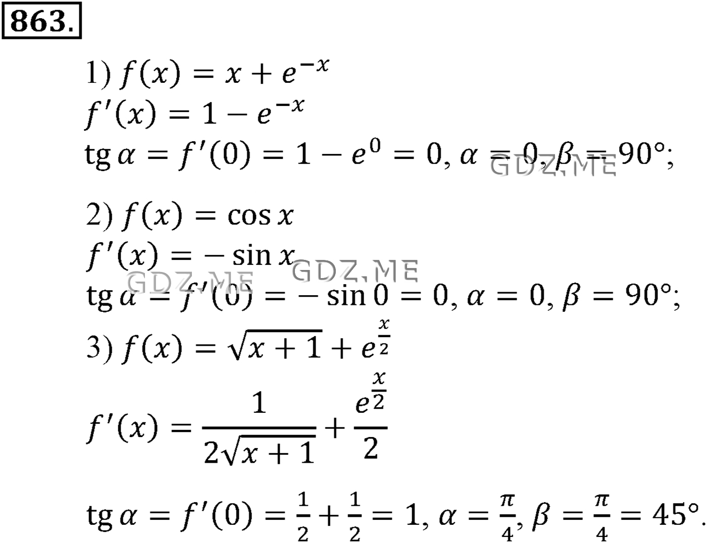 ГДЗ по Алгебре за 10 и 11 класс Алимов, Колягин. Ответ на Задание номер 863 (Глава 8 Производная и её геометрический смысл)