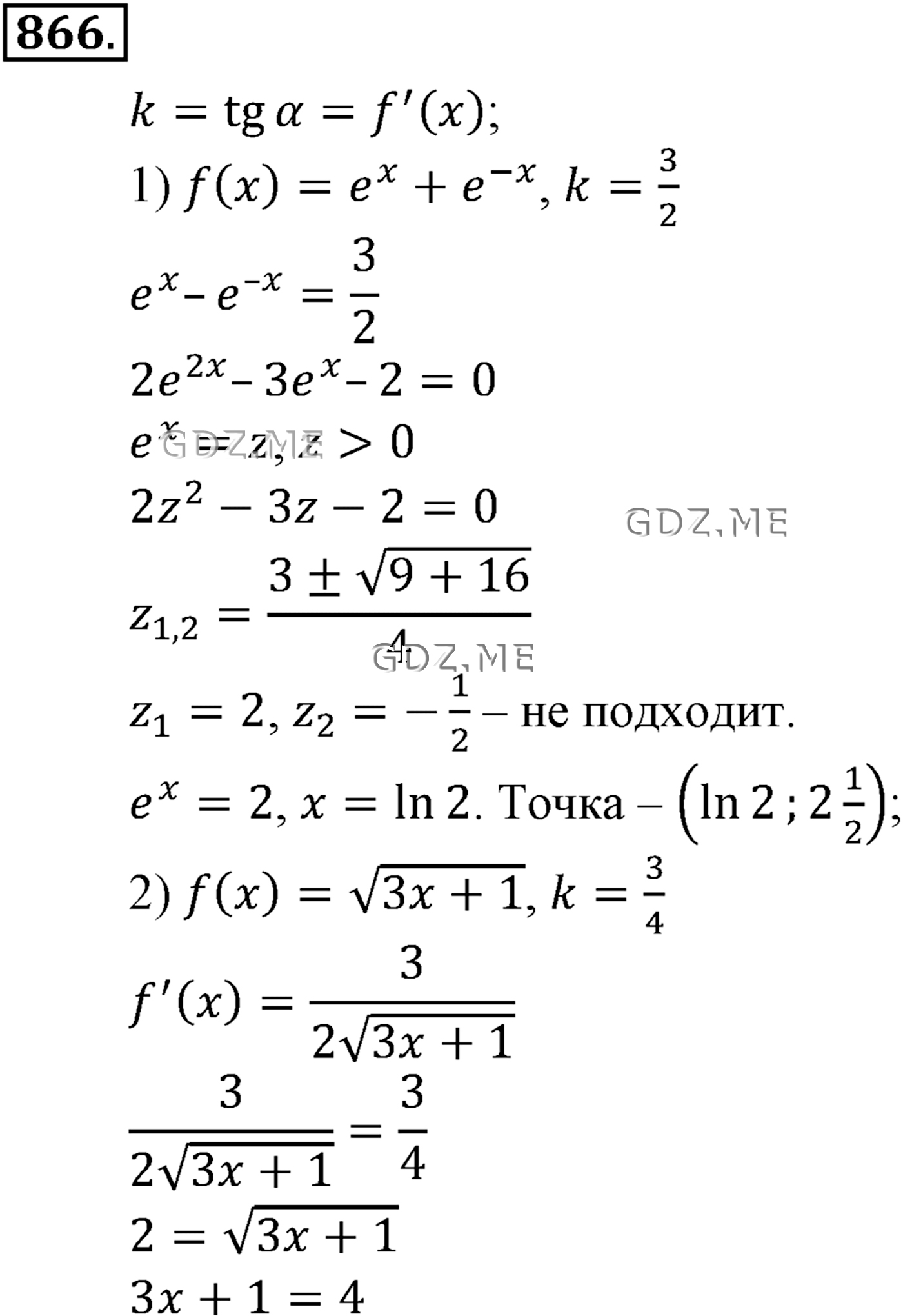 ГДЗ по Алгебре за 10 и 11 класс Алимов, Колягин. Ответ на Задание номер 866.1 (Глава 8 Производная и её геометрический смысл)
