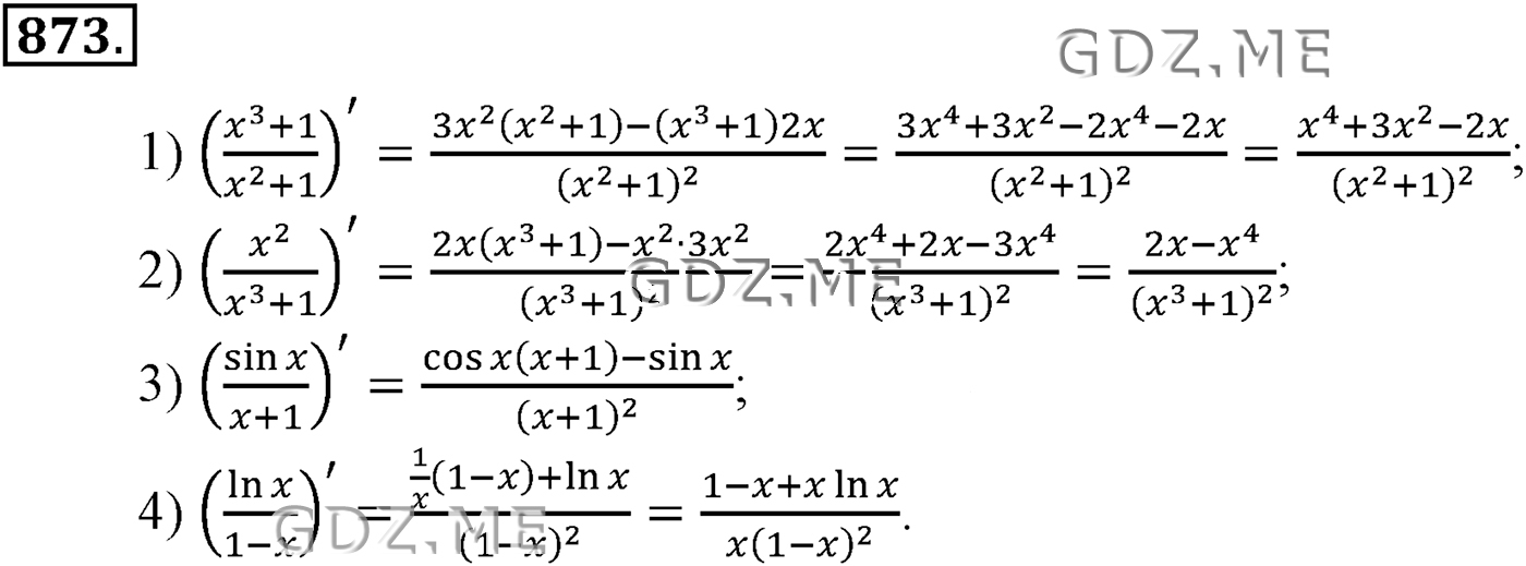 ГДЗ по Алгебре за 10 и 11 класс Алимов, Колягин. Ответ на Задание номер 873 (Глава 8 Производная и её геометрический смысл)