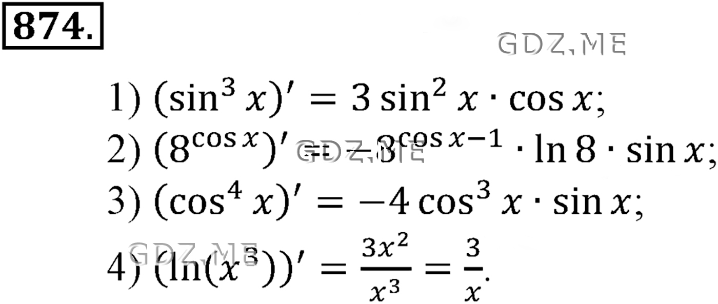 ГДЗ по Алгебре за 10 и 11 класс Алимов, Колягин. Ответ на Задание номер 874 (Глава 8 Производная и её геометрический смысл)