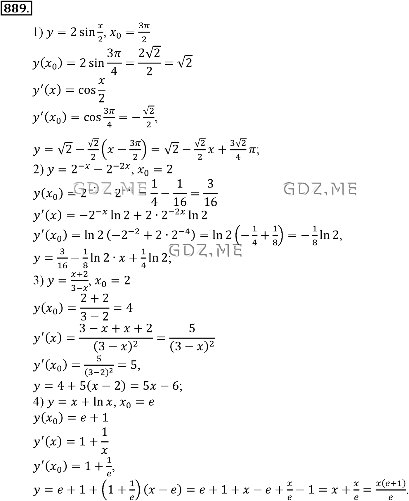 ГДЗ по Алгебре за 10 и 11 класс Алимов, Колягин. Ответ на Задание номер 889 (Глава 8 Производная и её геометрический смысл)