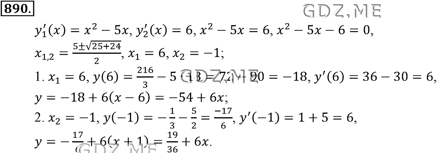 Подробный вариант решения из решебника (ГДЗ): Задание номер 890 (Глава 8 Производная и её геометрический смысл) по предмету Алгебра, за 10 класс, авторы учебника Алимов, Колягин.