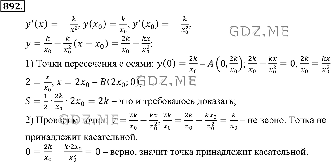 ГДЗ по Алгебре за 10 и 11 класс Алимов, Колягин. Ответ на Задание номер 892 (Глава 8 Производная и её геометрический смысл)