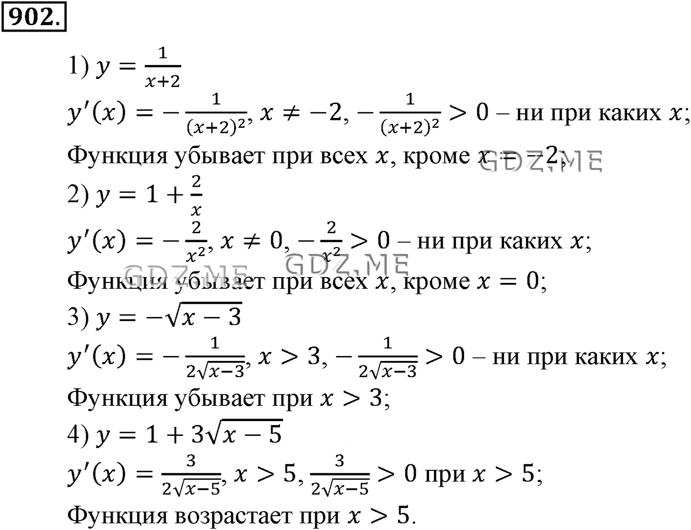 ГДЗ по Алгебре за 10 и 11 класс Алимов, Колягин. Ответ на Задание номер 902 (Глава 9 Применение производной к исследованию функций)
