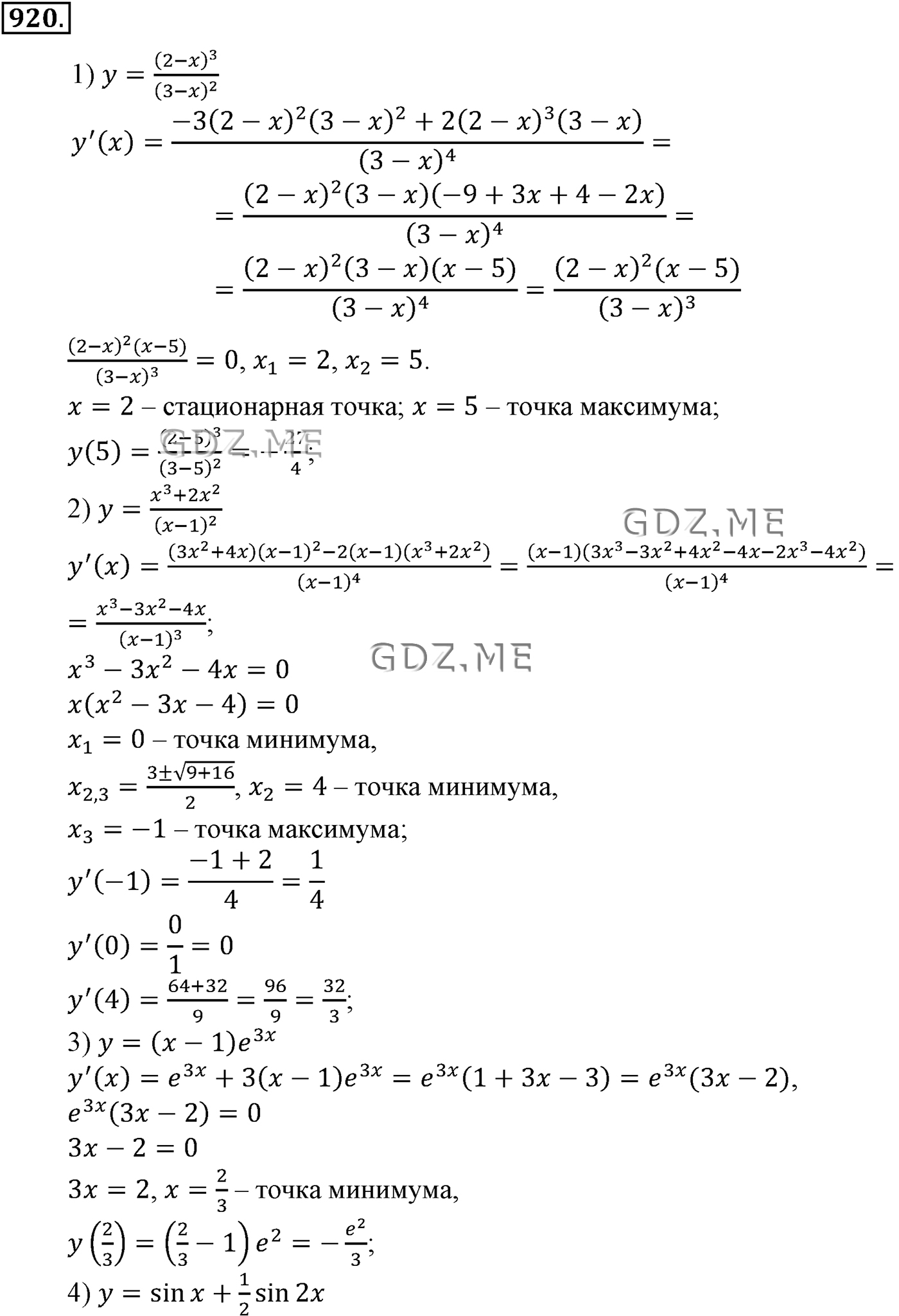 Подробный вариант решения из решебника (ГДЗ): Задание номер 920.1 (Глава 9 Применение производной к исследованию функций) по предмету Алгебра, за 10 класс, авторы учебника Алимов, Колягин.