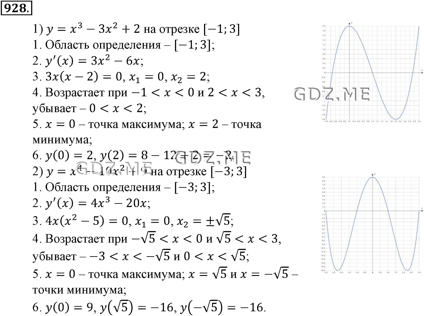 ГДЗ по Алгебре за 10 и 11 класс Алимов, Колягин. Ответ на Задание номер 928 (Глава 9 Применение производной к исследованию функций)