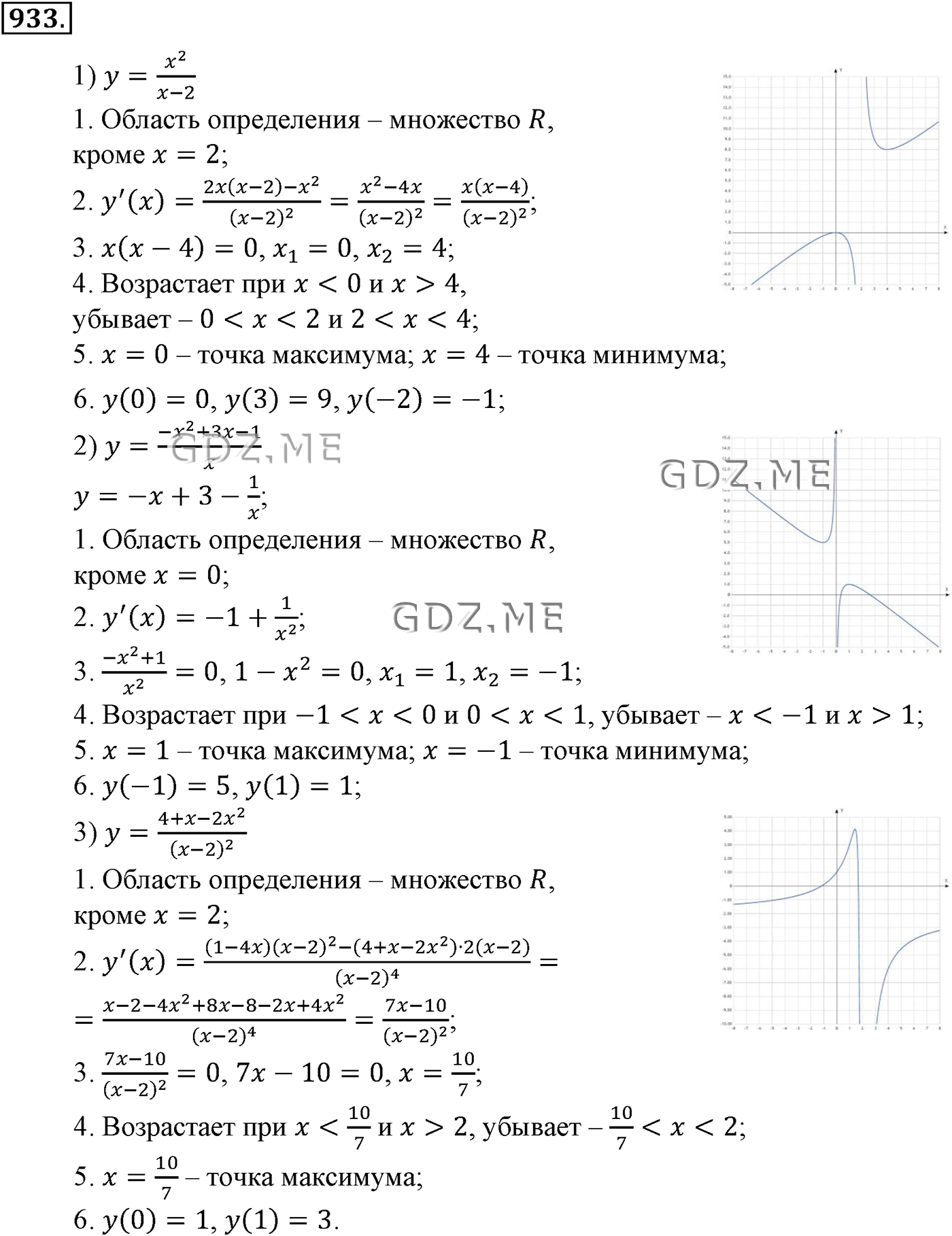 ГДЗ по Алгебре за 10 и 11 класс Алимов, Колягин. Ответ на Задание номер 933 (Глава 9 Применение производной к исследованию функций)