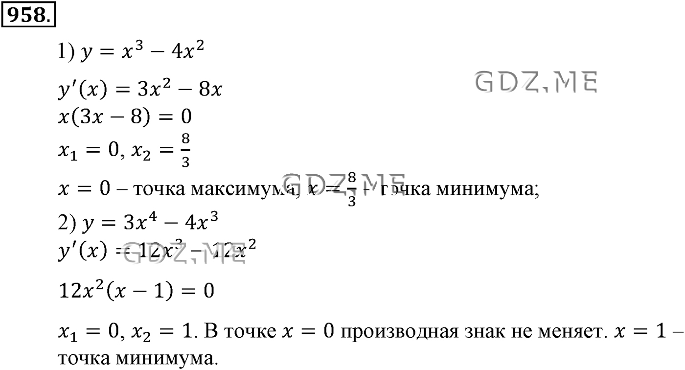 ГДЗ по Алгебре за 10 и 11 класс Алимов, Колягин. Ответ на Задание номер 958 (Глава 9 Применение производной к исследованию функций)