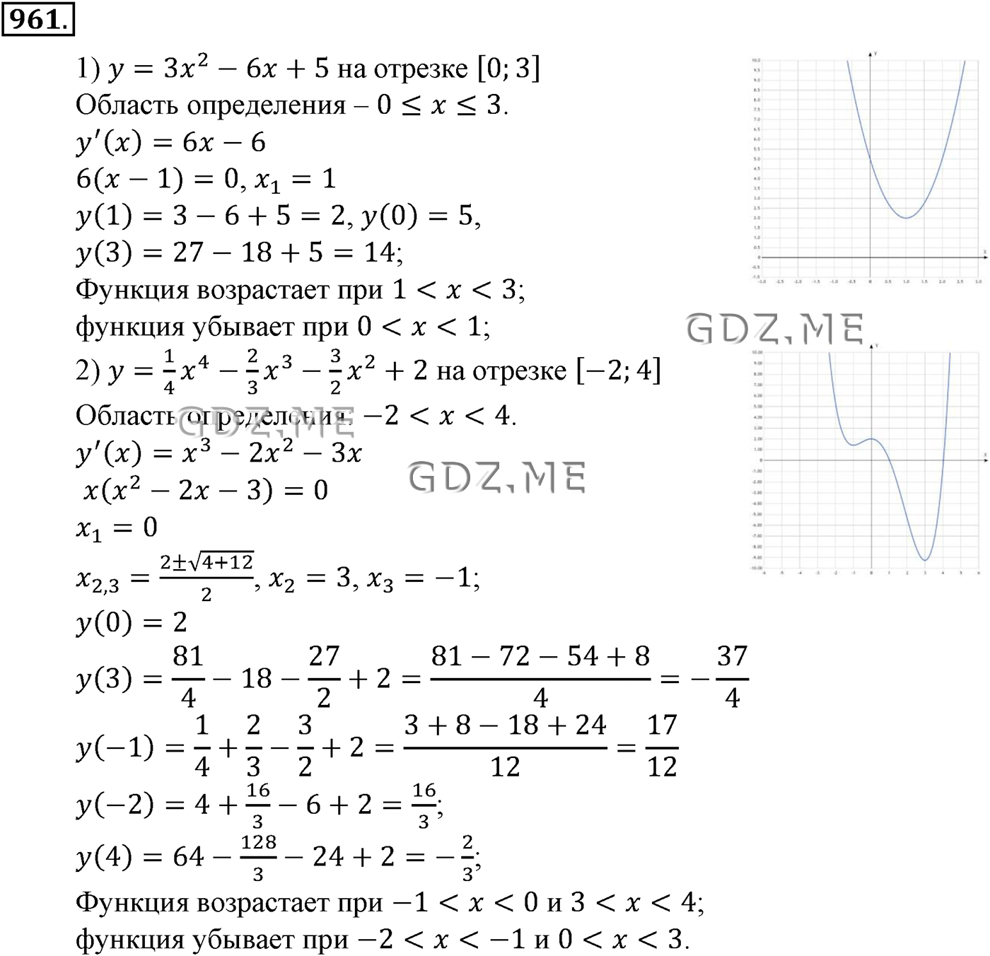 ГДЗ по Алгебре за 10 и 11 класс Алимов, Колягин. Ответ на Задание номер 961 (Глава 9 Применение производной к исследованию функций)
