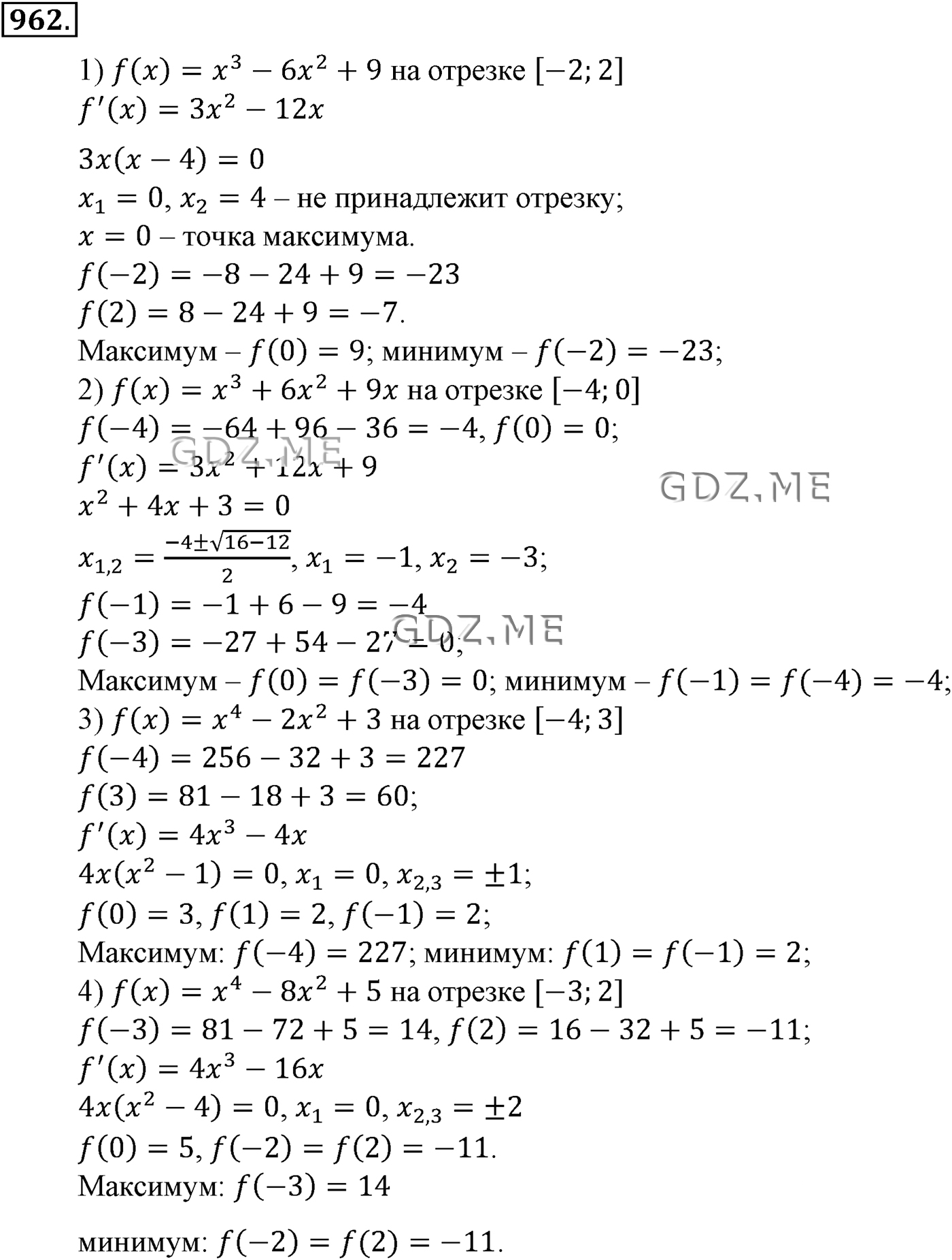 ГДЗ по Алгебре за 10 и 11 класс Алимов, Колягин. Ответ на Задание номер 962 (Глава 9 Применение производной к исследованию функций)