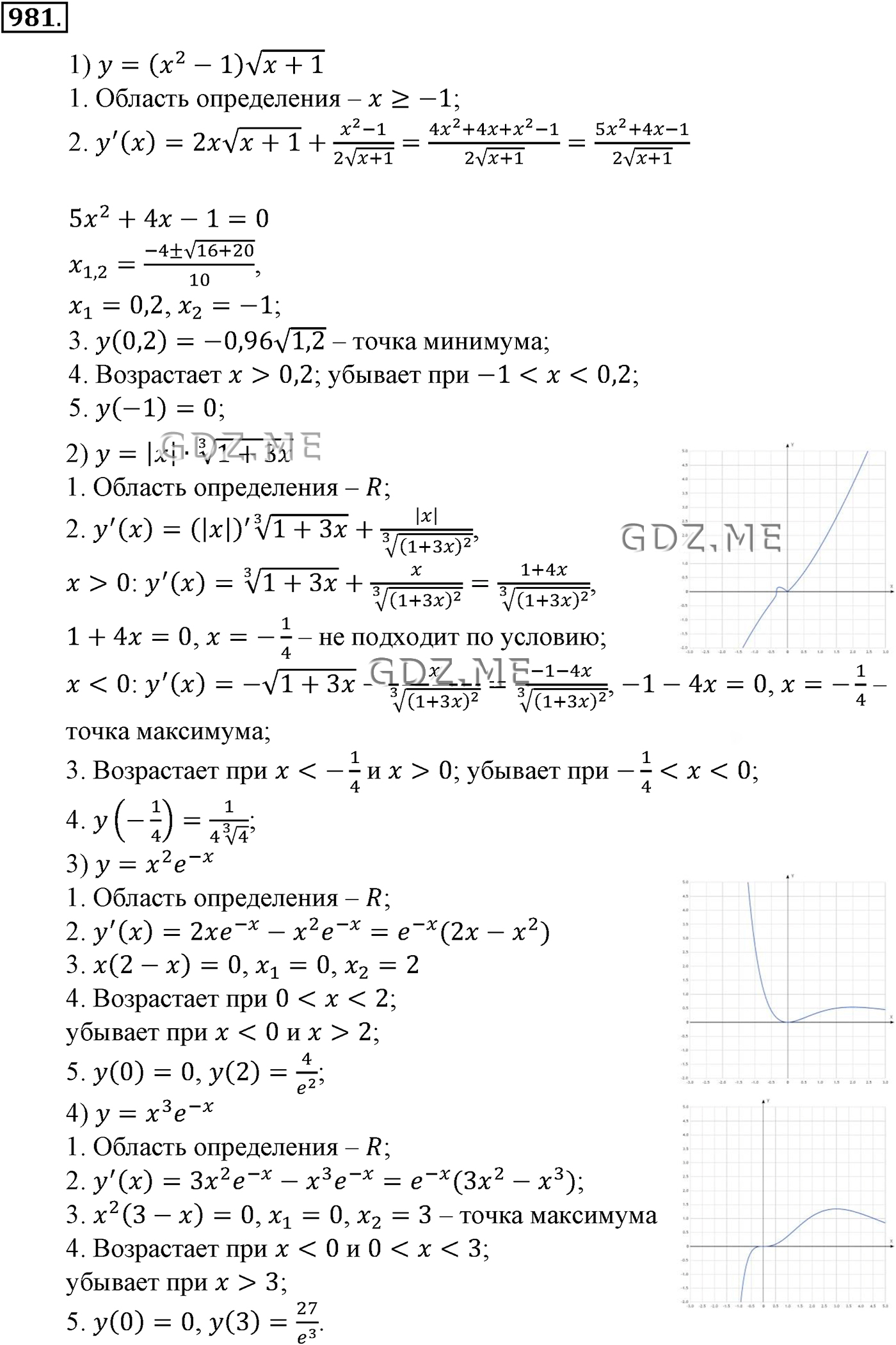 ГДЗ по Алгебре за 10 и 11 класс Алимов, Колягин. Ответ на Задание номер 981 (Глава 9 Применение производной к исследованию функций)
