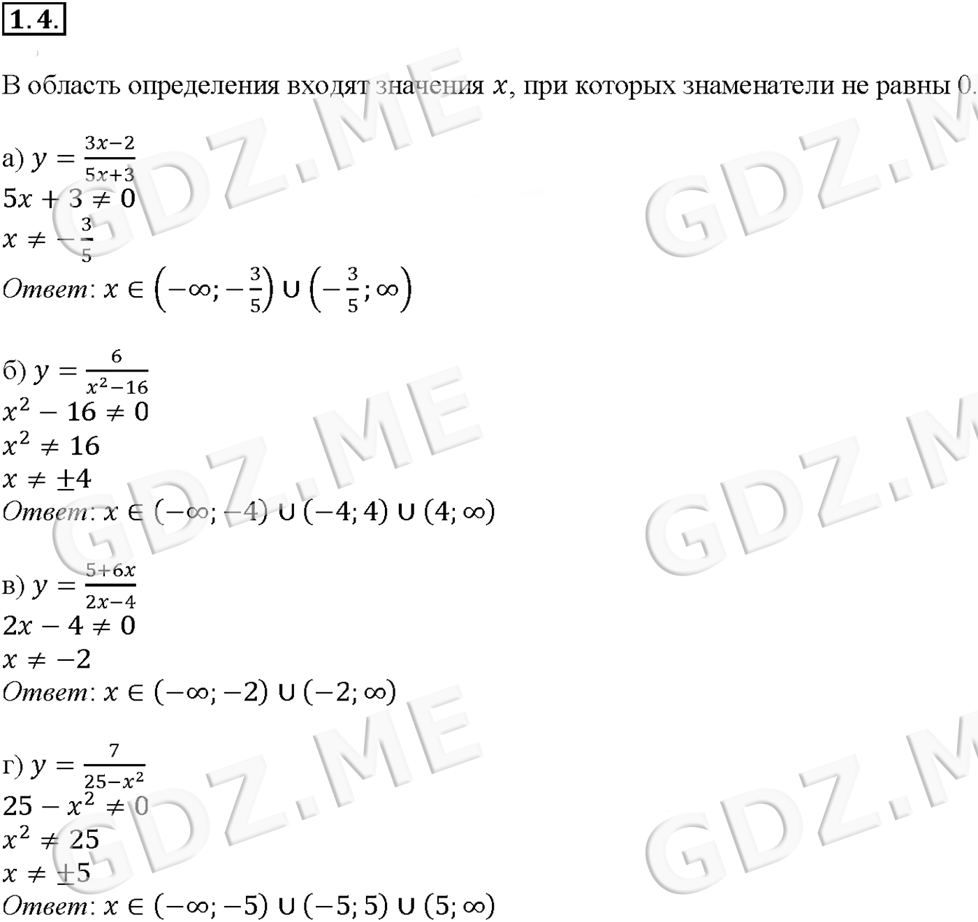 Подробный вариант решения из решебника (ГДЗ): Задание номер 1-4 (Глава 1 Числовые функции. §1. Определение числовой функции и способы ее задания) по предмету Алгебра, за 10 класс, авторы учебника Мордкович, Александрова.