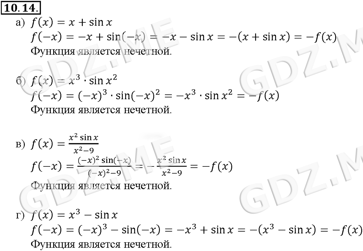 Подробный вариант решения из решебника (ГДЗ): Задание номер 10-14 (Глава 2 Тригонометрические функции. §10. Функция у = sin x, ее свойства и график) по предмету Алгебра, за 10 класс, авторы учебника Мордкович, Александрова.
