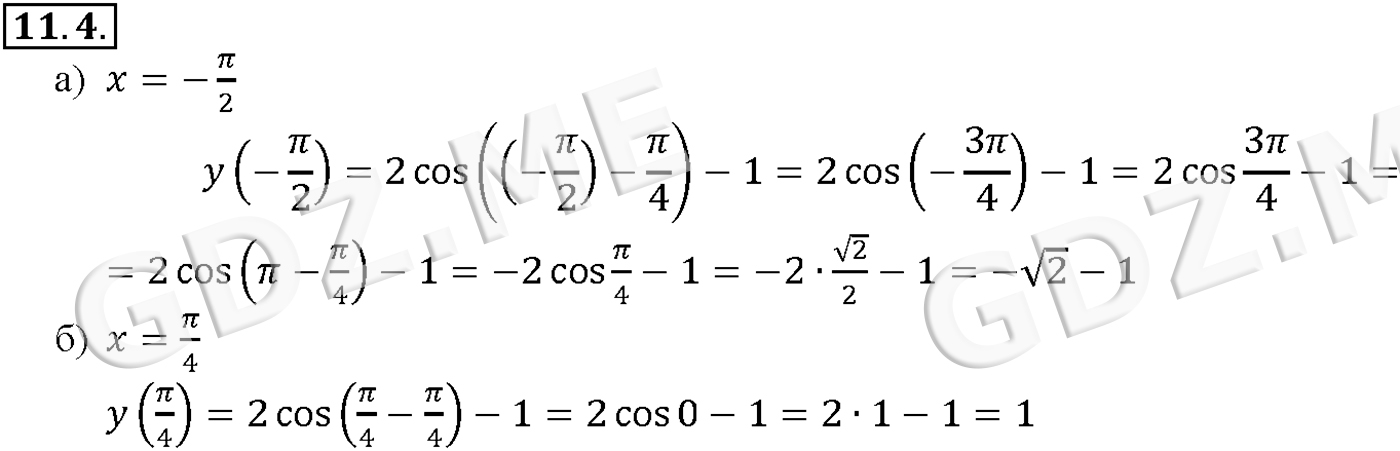 Подробный вариант решения из решебника (ГДЗ): Задание номер 11-4 (Глава 2 Тригонометрические функции. §11. Функция у = cos x, ее свойства и график) по предмету Алгебра, за 10 класс, авторы учебника Мордкович, Александрова.