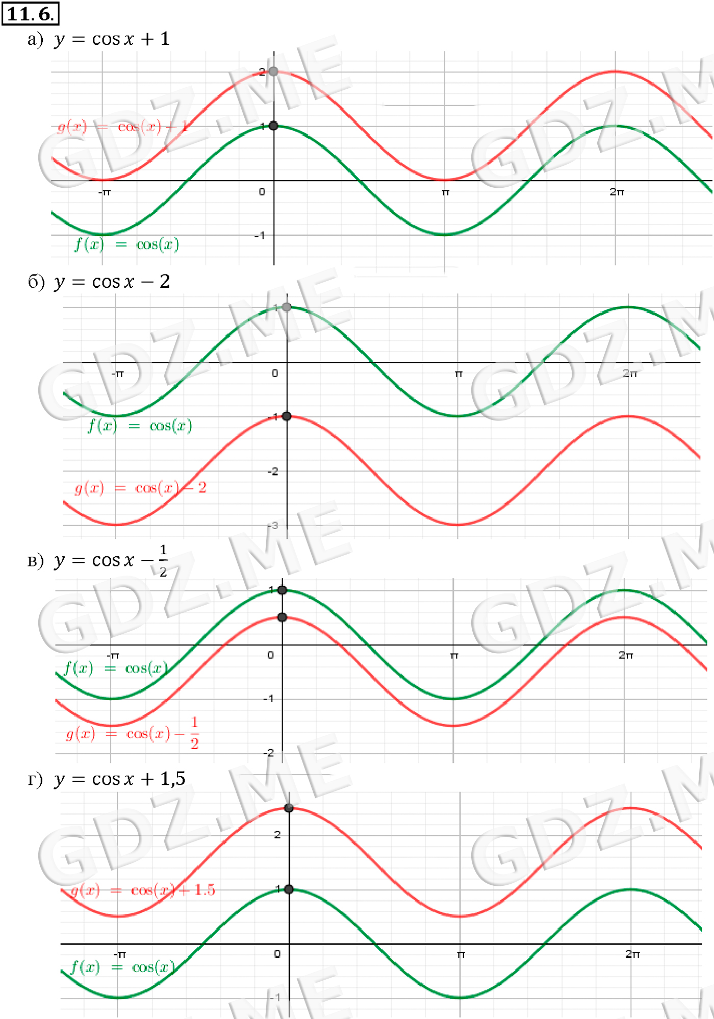 Подробный вариант решения из решебника (ГДЗ): Задание номер 11-6 (Глава 2 Тригонометрические функции. §11. Функция у = cos x, ее свойства и график) по предмету Алгебра, за 10 класс, авторы учебника Мордкович, Александрова.