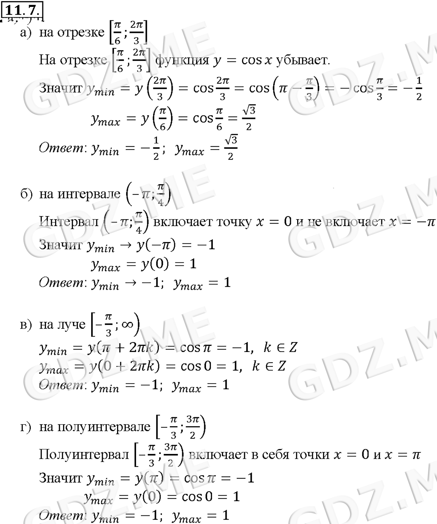 Подробный вариант решения из решебника (ГДЗ): Задание номер 11-7 (Глава 2 Тригонометрические функции. §11. Функция у = cos x, ее свойства и график) по предмету Алгебра, за 10 класс, авторы учебника Мордкович, Александрова.