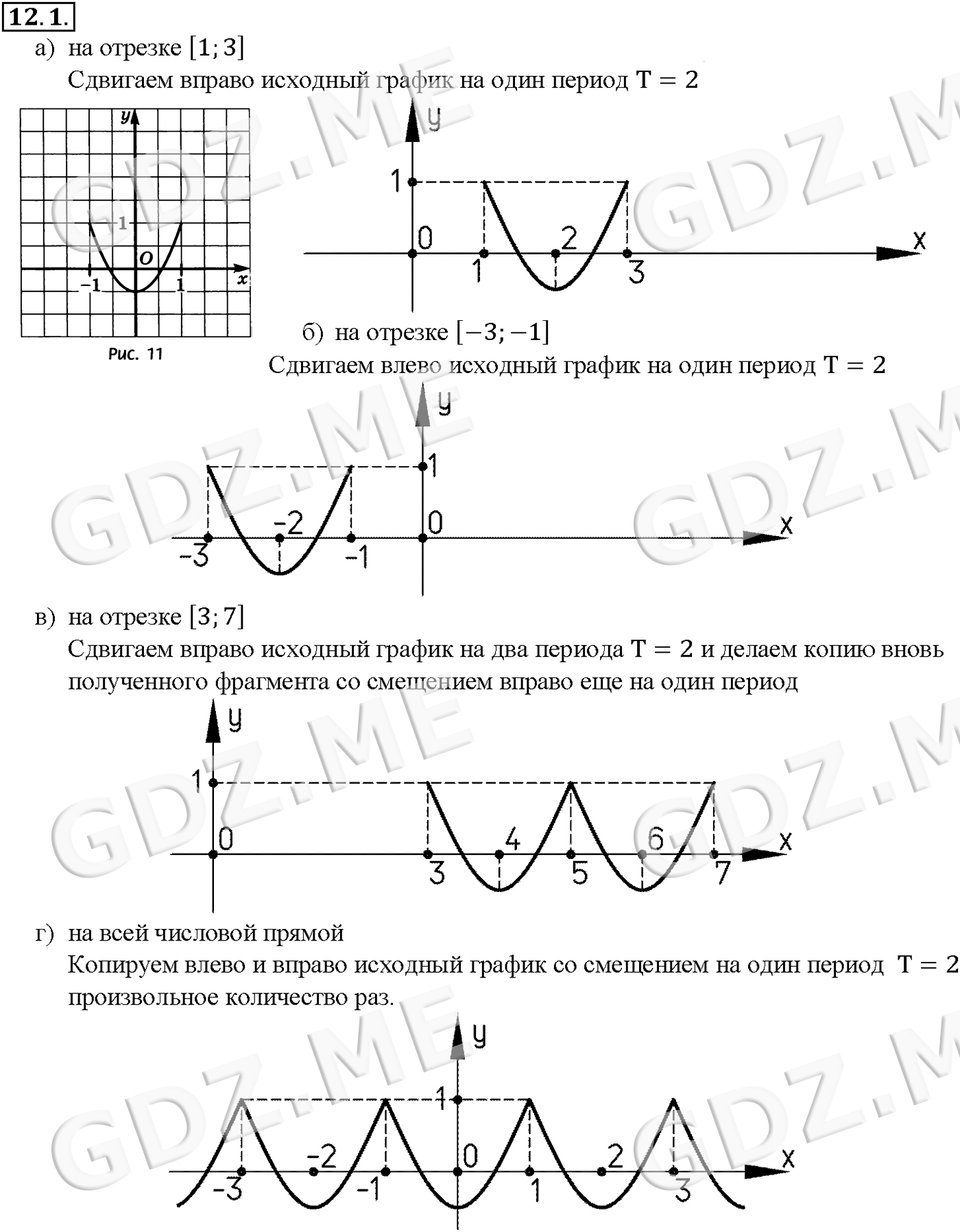 Подробный вариант решения из решебника (ГДЗ): Задание номер 12-1 (Глава 2 Тригонометрические функции. §12. Периодичность функций у = sin х, у = cos х) по предмету Алгебра, за 10 класс, авторы учебника Мордкович, Александрова.