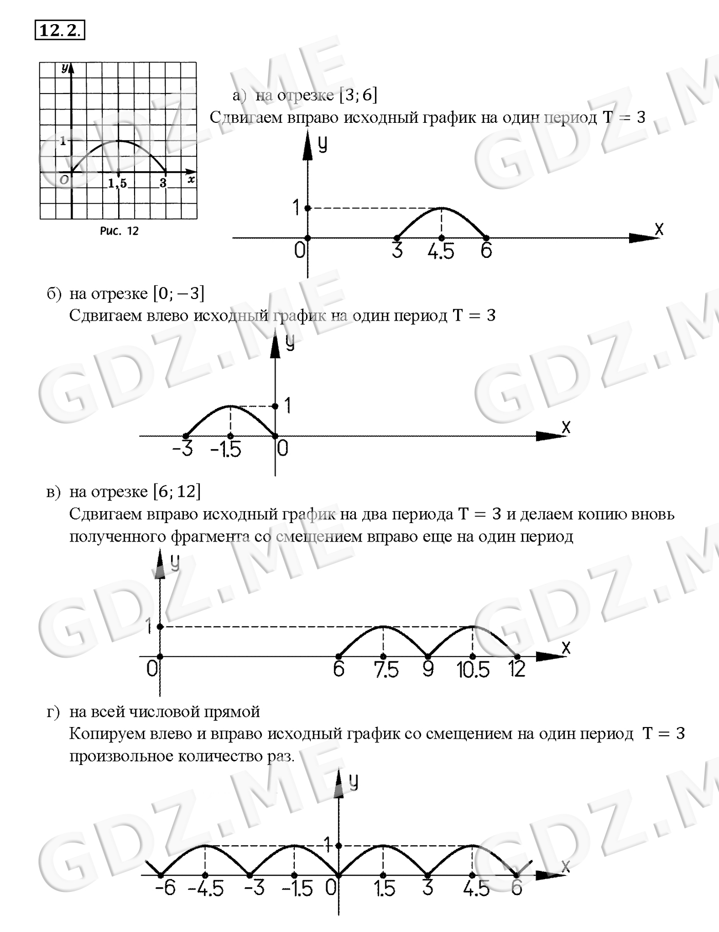 Подробный вариант решения из решебника (ГДЗ): Задание номер 12-2 (Глава 2 Тригонометрические функции. §12. Периодичность функций у = sin х, у = cos х) по предмету Алгебра, за 10 класс, авторы учебника Мордкович, Александрова.