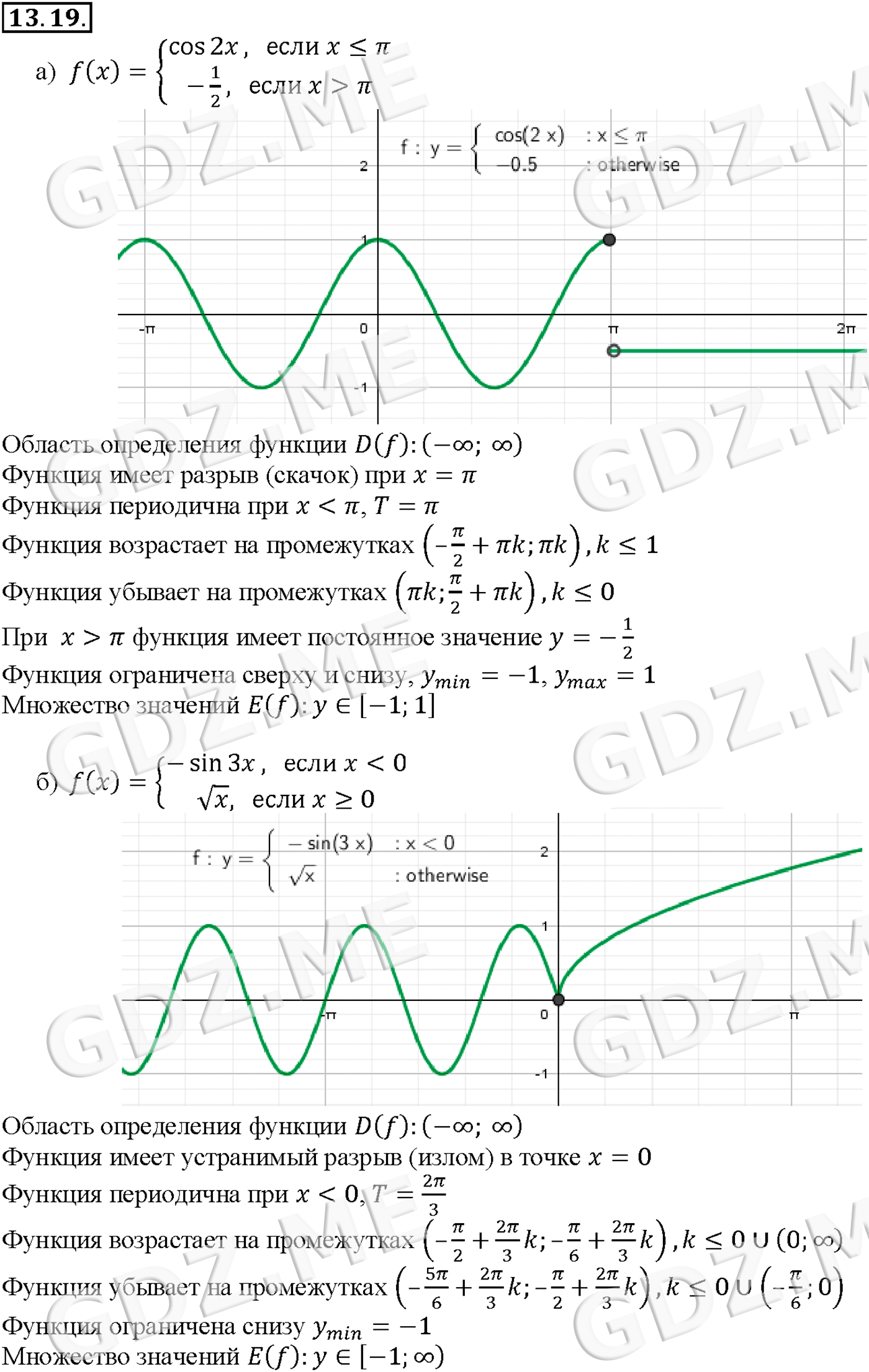 Подробный вариант решения из решебника (ГДЗ): Задание номер 13-19 (Глава 2 Тригонометрические функции. §13. Преобразование графиков тригонометрических функций) по предмету Алгебра, за 10 класс, авторы учебника Мордкович, Александрова.