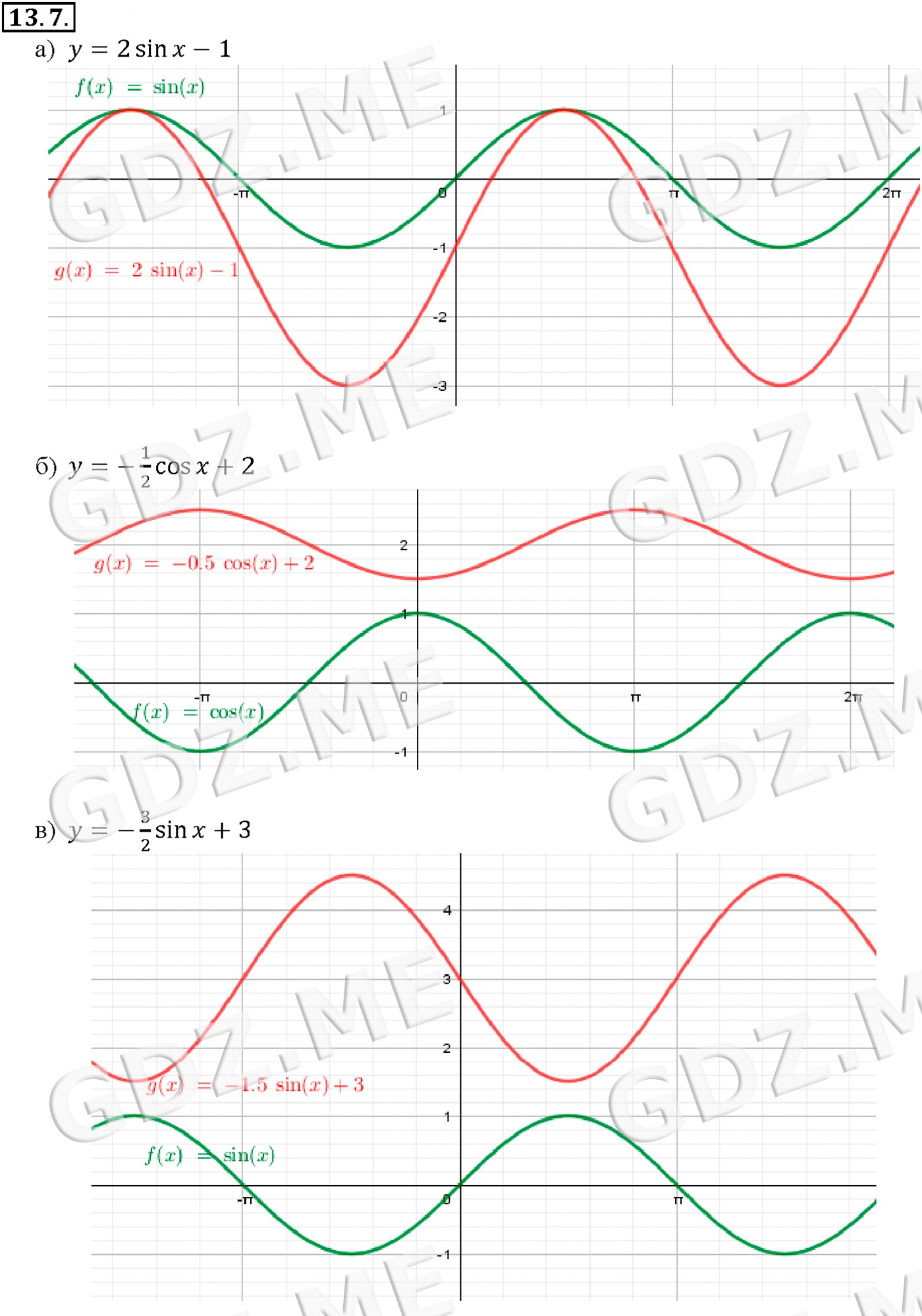 Подробный вариант решения из решебника (ГДЗ): Задание номер 13-7_1 (Глава 2 Тригонометрические функции. §13. Преобразование графиков тригонометрических функций) по предмету Алгебра, за 10 класс, авторы учебника Мордкович, Александрова.