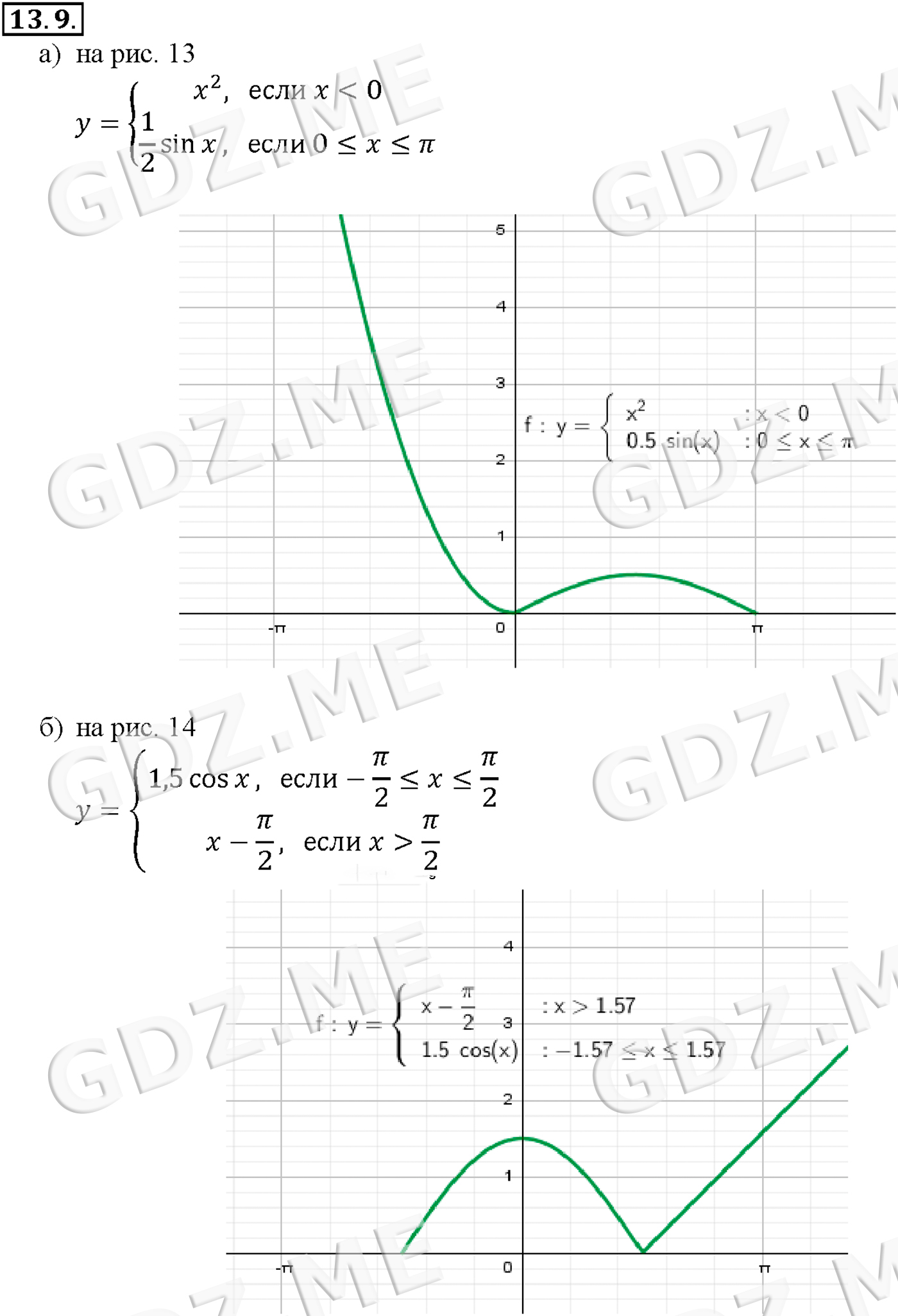 Подробный вариант решения из решебника (ГДЗ): Задание номер 13-9 (Глава 2 Тригонометрические функции. §13. Преобразование графиков тригонометрических функций) по предмету Алгебра, за 10 класс, авторы учебника Мордкович, Александрова.