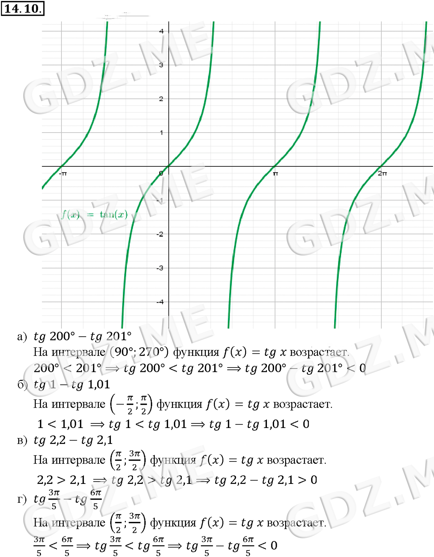Подробный вариант решения из решебника (ГДЗ): Задание номер 14-10 (Глава 2 Тригонометрические функции. §14. Функции у = tg х, у = ctg x, их свойства и графики) по предмету Алгебра, за 10 класс, авторы учебника Мордкович, Александрова.