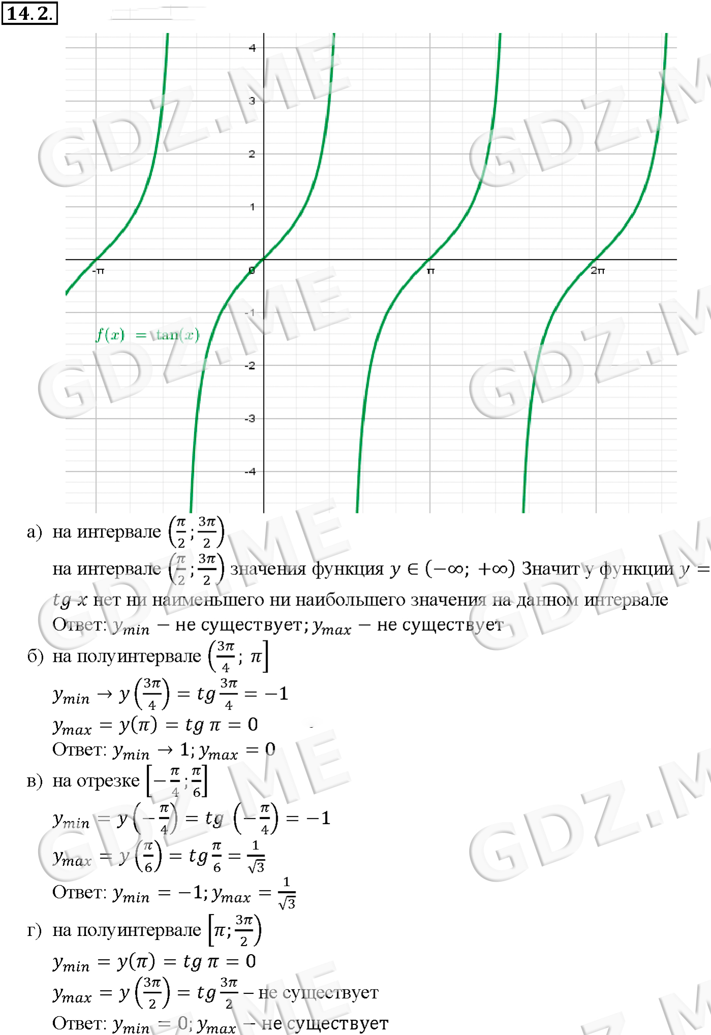 Подробный вариант решения из решебника (ГДЗ): Задание номер 14-2 (Глава 2 Тригонометрические функции. §14. Функции у = tg х, у = ctg x, их свойства и графики) по предмету Алгебра, за 10 класс, авторы учебника Мордкович, Александрова.