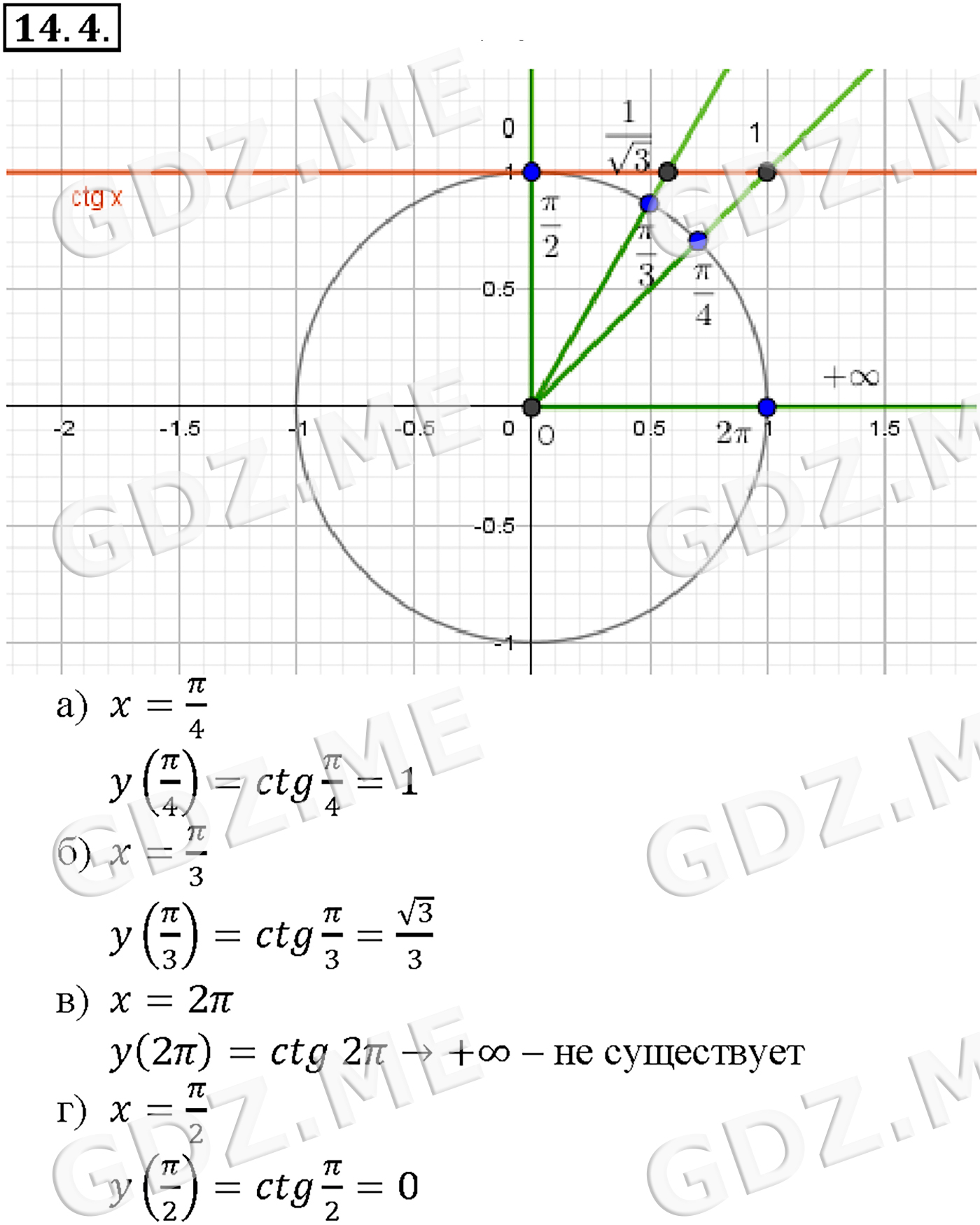 Подробный вариант решения из решебника (ГДЗ): Задание номер 14-4 (Глава 2 Тригонометрические функции. §14. Функции у = tg х, у = ctg x, их свойства и графики) по предмету Алгебра, за 10 класс, авторы учебника Мордкович, Александрова.