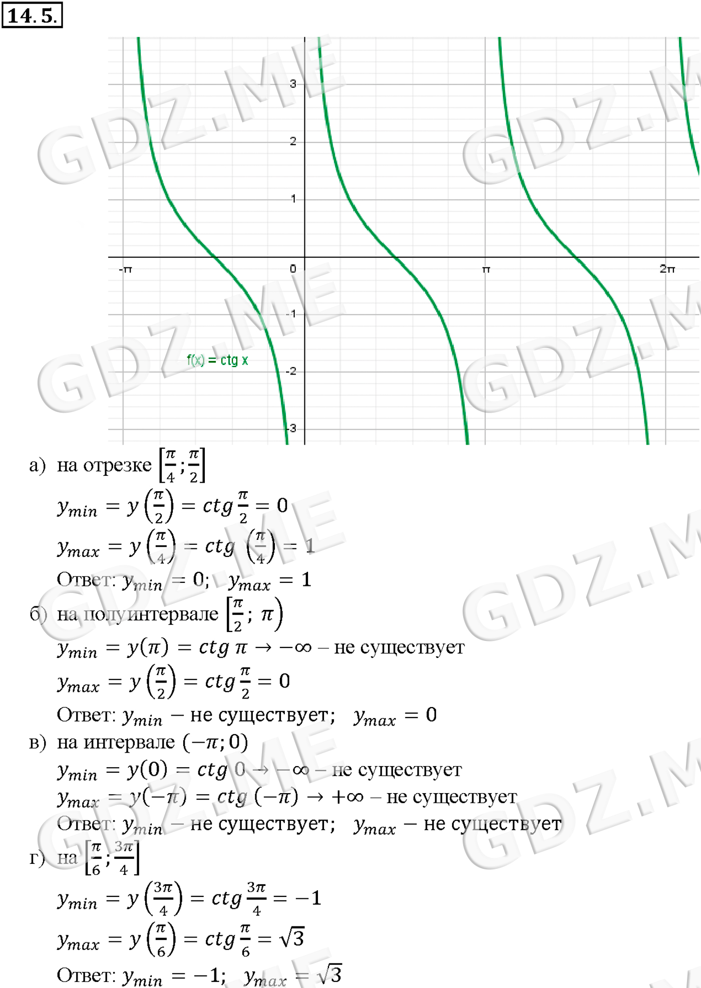 Подробный вариант решения из решебника (ГДЗ): Задание номер 14-5 (Глава 2 Тригонометрические функции. §14. Функции у = tg х, у = ctg x, их свойства и графики) по предмету Алгебра, за 10 класс, авторы учебника Мордкович, Александрова.