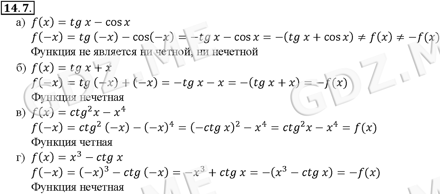 Подробный вариант решения из решебника (ГДЗ): Задание номер 14-7 (Глава 2 Тригонометрические функции. §14. Функции у = tg х, у = ctg x, их свойства и графики) по предмету Алгебра, за 10 класс, авторы учебника Мордкович, Александрова.