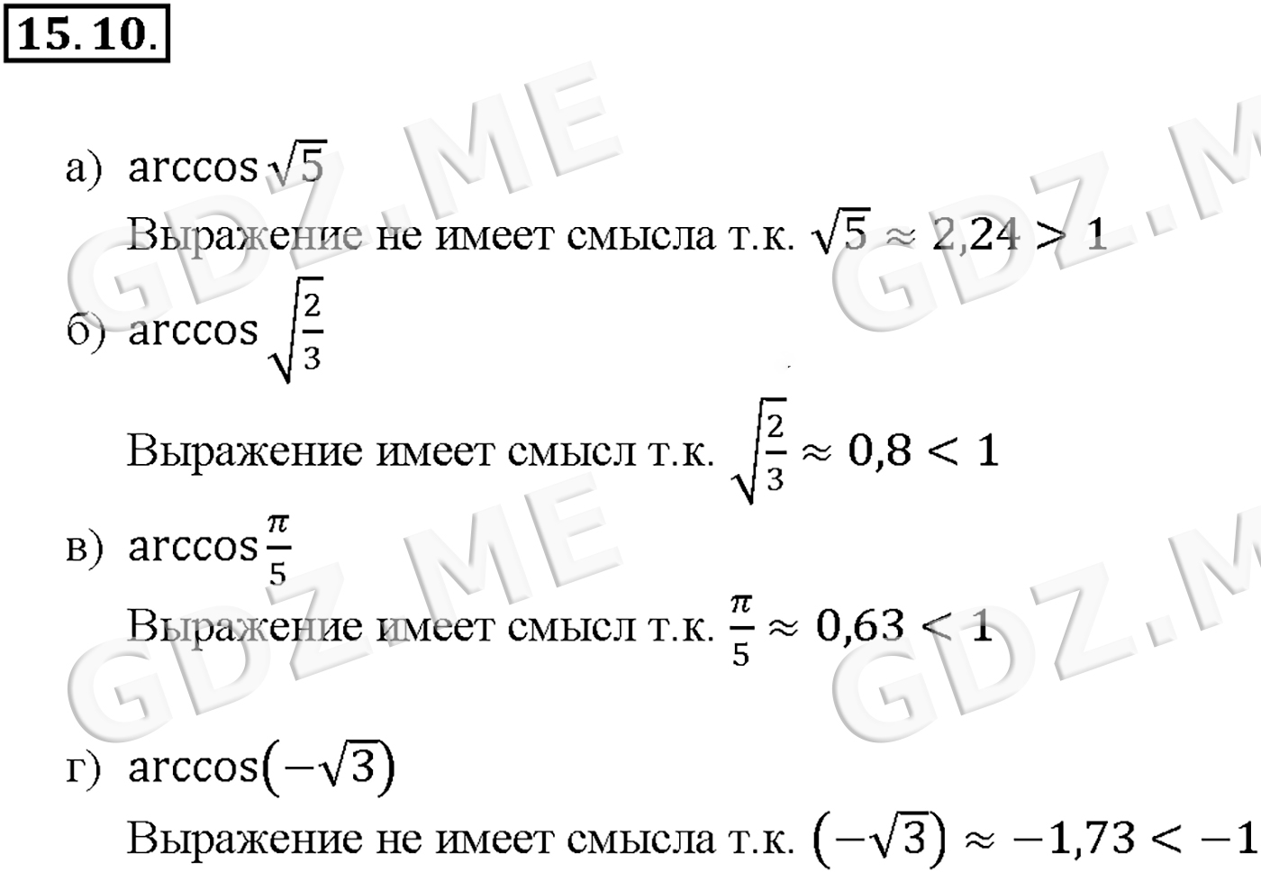 Подробный вариант решения из решебника (ГДЗ): Задание номер 15-10 (Глава 2 Тригонометрические функции. Глава 3 Тригонометрические уравнения. §15. Арккосинус. Решение уравнения cos t = a) по предмету Алгебра, за 10 класс, авторы учебника Мордкович, Александрова.