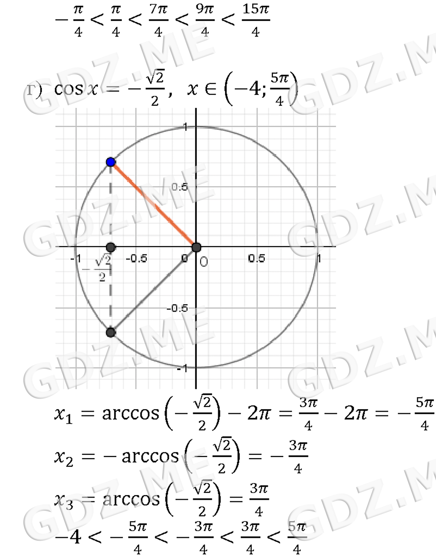 Подробный вариант решения из решебника (ГДЗ): Задание номер 15-15_3 (Глава 2 Тригонометрические функции. Глава 3 Тригонометрические уравнения. §15. Арккосинус. Решение уравнения cos t = a) по предмету Алгебра, за 10 класс, авторы учебника Мордкович, Александрова.