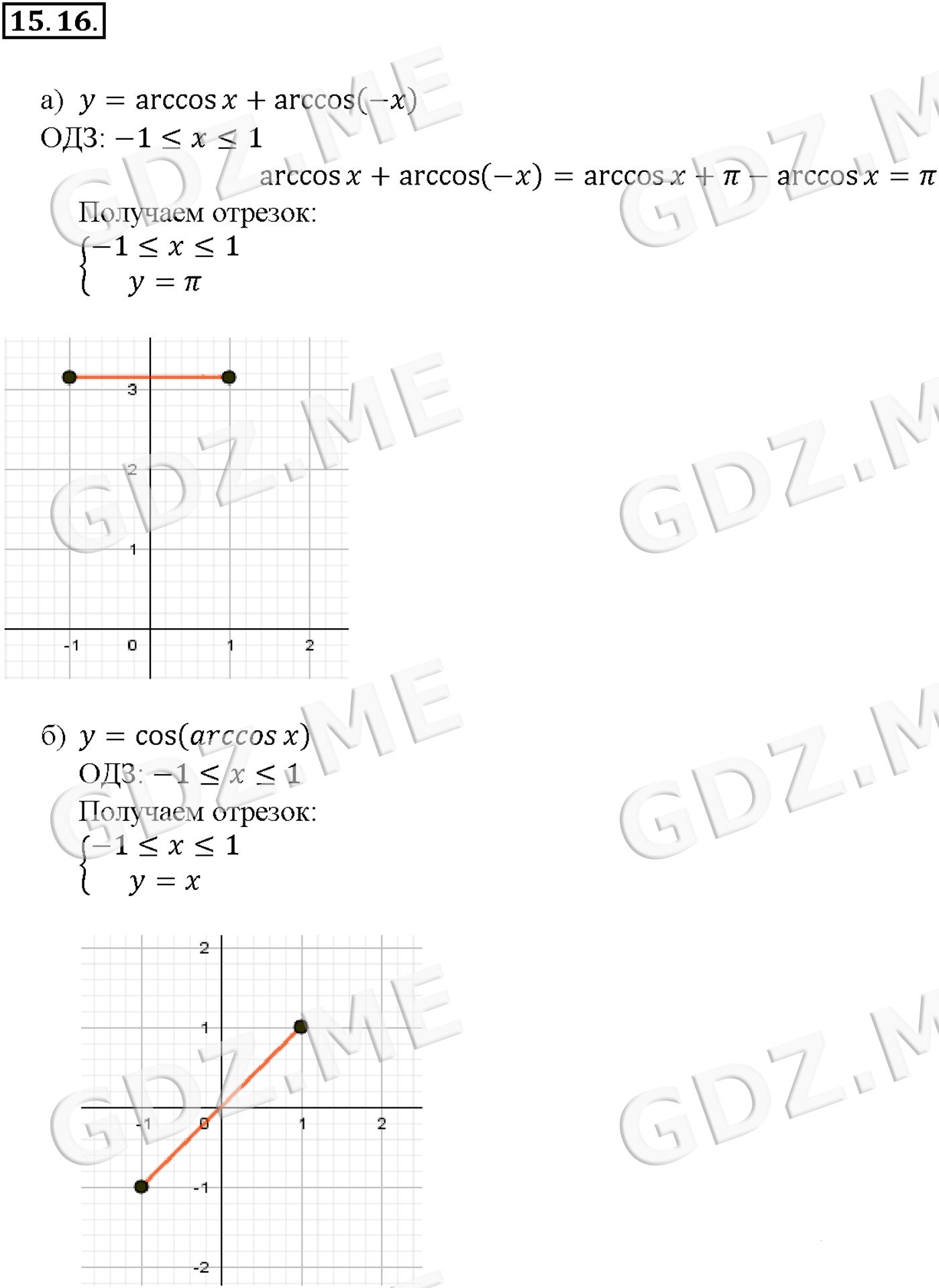 Подробный вариант решения из решебника (ГДЗ): Задание номер 15-16 (Глава 2 Тригонометрические функции. Глава 3 Тригонометрические уравнения. §15. Арккосинус. Решение уравнения cos t = a) по предмету Алгебра, за 10 класс, авторы учебника Мордкович, Александрова.