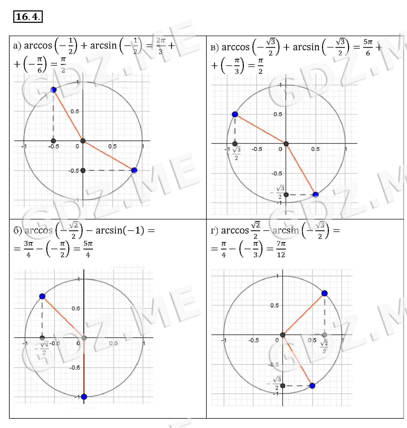 Подробный вариант решения из решебника (ГДЗ): Задание номер 16-4 (Глава 2 Тригонометрические функции. Глава 3 Тригонометрические уравнения. §16. Арксинус. Решение уравнения sin t = a) по предмету Алгебра, за 10 класс, авторы учебника Мордкович, Александрова.