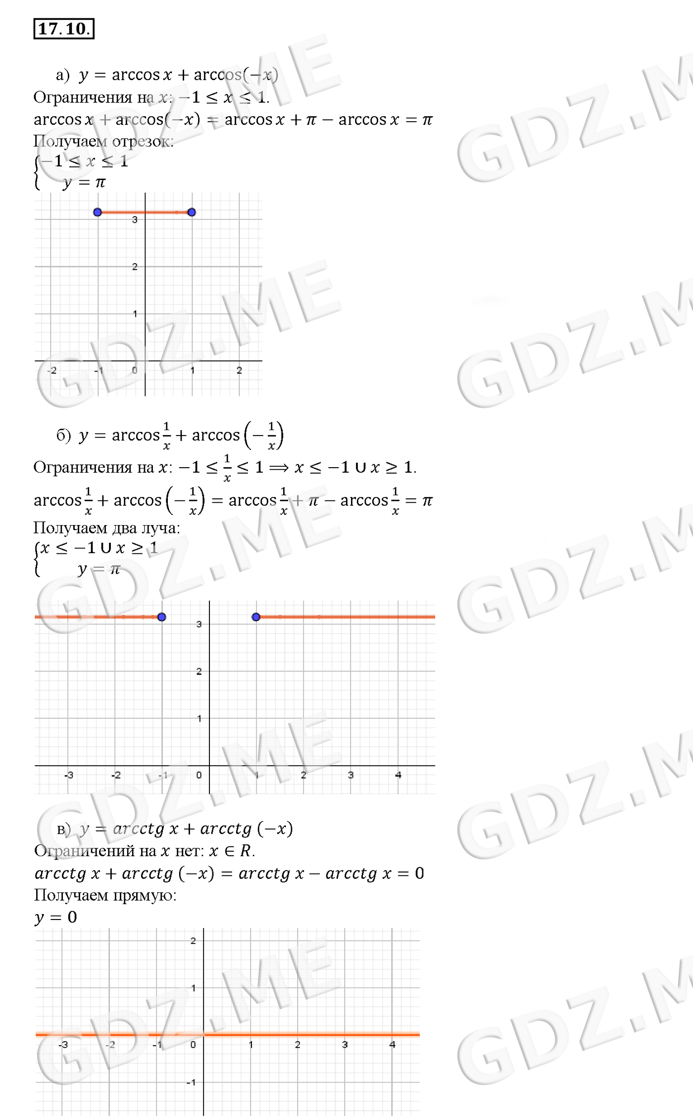 Подробный вариант решения из решебника (ГДЗ): Задание номер 17-10_1 (Глава 2 Тригонометрические функции. Глава 3 Тригонометрические уравнения. §17. Арктангенс и арккотангенс. Решение уравнений tg х = a, ctg х = а) по предмету Алгебра, за 10 класс, авторы учебника Мордкович, Александрова.